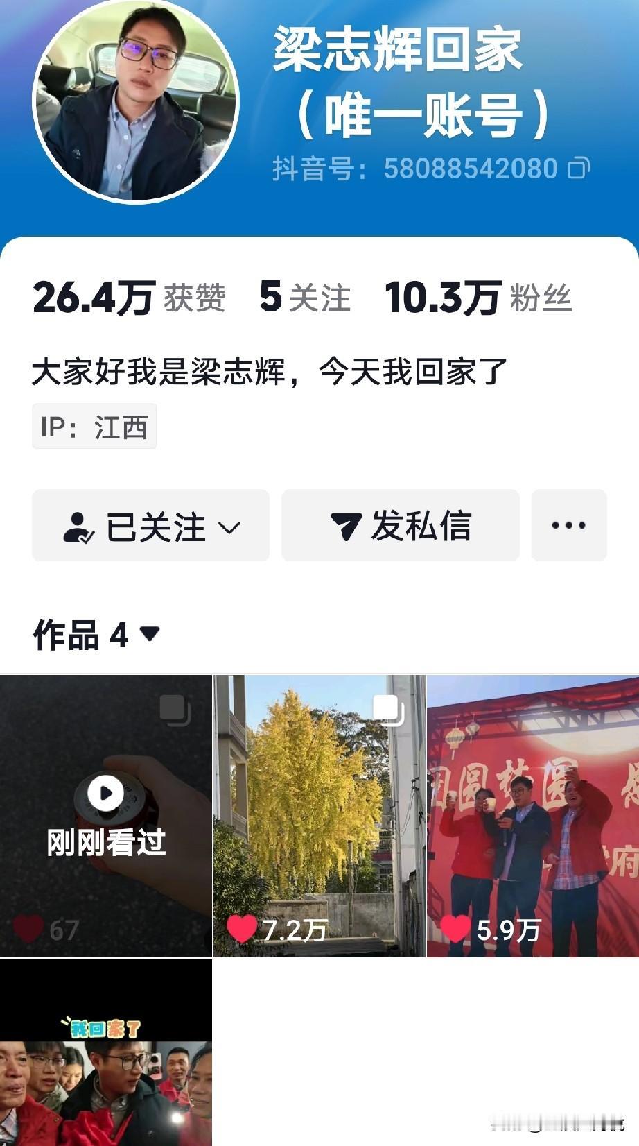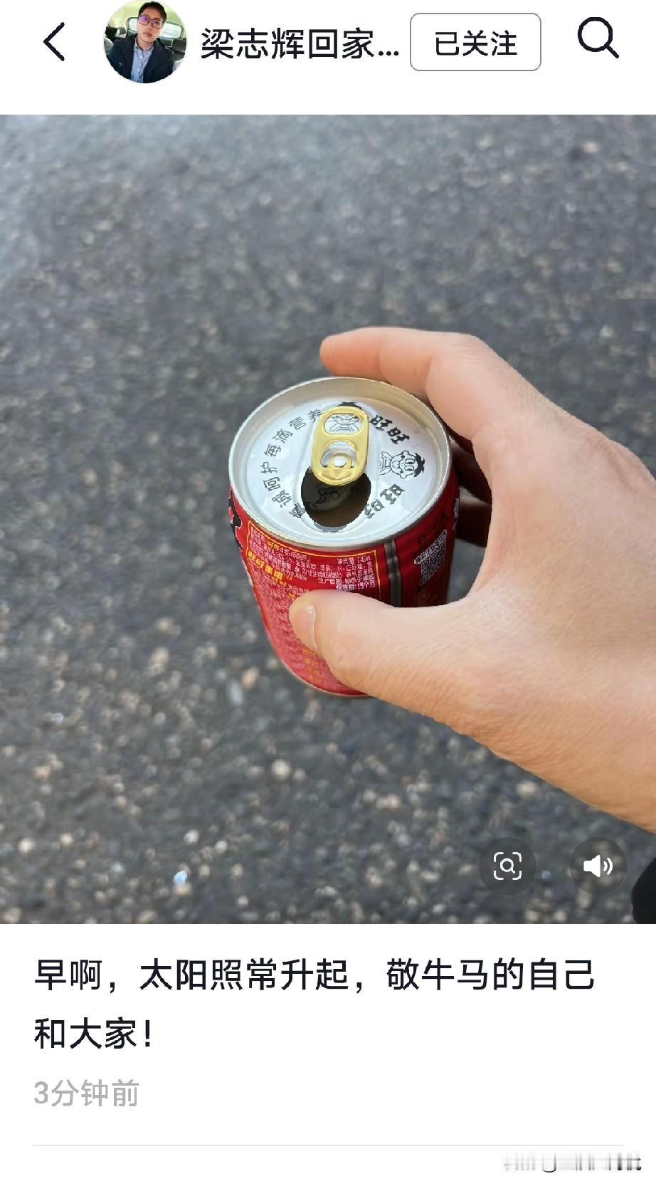 梁志辉今天一早上更新一个视频,一分钟57人点赞,5个人评论, 梁志辉只说了一句话,早啊,太阳照常升起,敬牛马的自己和大家。 梁志辉说的对,不管怎么样,发生了什么变化,每天太阳都是照常升起。做好自己就好了,不要管大家说些什么, 不过,梁志辉的粉丝涨的挺快的,现在已经超出10万,以后会不会直播带货呢?大家怎么说呢?