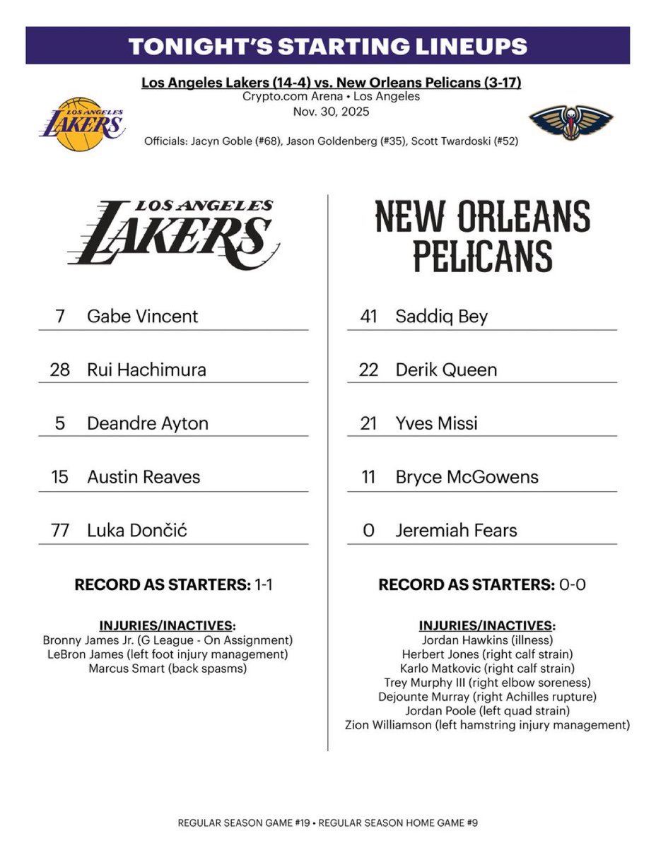 湖人自媒体LakersLead报道,盖布·文森特顶替勒布朗·詹姆斯进入本场比赛首发阵容。