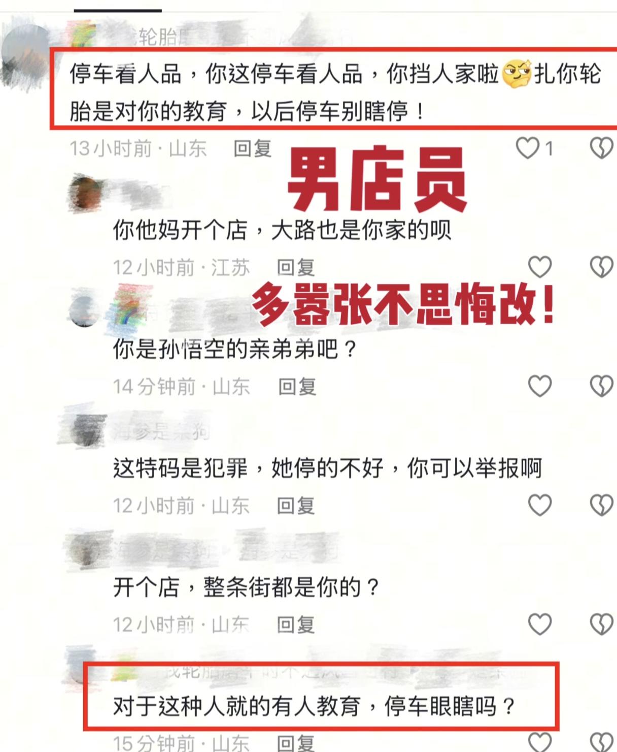 被抓现行还不认!女子路边临时停车,却被店主投放钉子,车主手机拍到证据,仍不承认,后报警处理,也只是教育批评,但店主从始至终都很理直气壮,认为自己没有错。 因为放学接孩子,高峰期车特别多,车主就在交警指引下,临时停靠在路边一家汽车生活馆门口的路边。 视频中可以看出来,路口停完车之后,还是有足够的距离供其他车辆开进店内的。 可女子刚离开一分钟左右,就接到商家电话,女子说明了原因后,商家仍很不近人情,态度十分强硬,要求立刻就得把车开走。 女子返回时候觉得情况可能不太好,就提前拿出手机拍视频,刚好看到两个人鬼鬼祟祟的在车轮下放钉子,还查看摆的位置是否满意。 见女子回来后,两人躲开,女子仔细查看后,找出两颗钉子,询问刚才的两个人,否认钉子是他们放的,态度也十分的不好。 后女子报警,警察来了后,商家才承认并给车主道歉,说了声“对不起”。 但警察对店主和店员也只是批评教育了一番,店员就更加得意了,一副小人得志的模样。 从始至终,商家都没有认为自己有错,所以女子才将视频公布到网上,店主和店员甚至还跑去评论区责怪车主的不对。 也有人认为是车主的错,车子属于违停,而且停在别人的店门口,影响了做生生意。 但接过孩子的都知道,放学时段,在不影响交通堵路的前提下,违停交警都是默许,况且马路又不是店家的私有财产。 违停自有交警管,但“放钉子”这件事表明了商家心胸狭隘,这样的商家还能做服务行业吗? 女子也是很机智勇敢的,及时拿出手机留下证据,面对商家的“缺德”硬刚到底,虽然商家没有受到具体的处罚,但视频一经曝光,口碑和生意肯定是要受到影响了,真是损人不利己了!