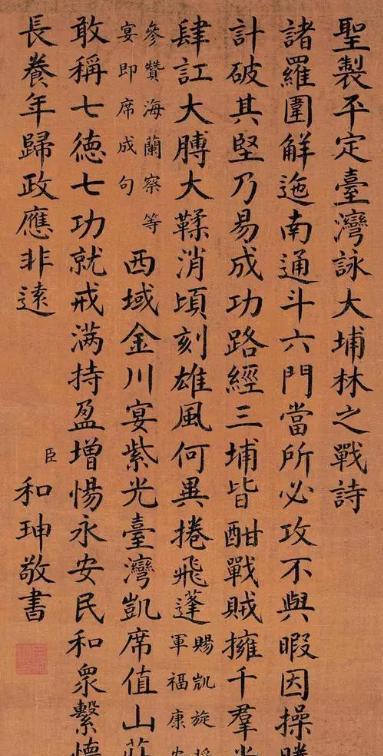 从秦至清,贪官无数,而名头最响者,非和珅莫属。影视演绎、史书记载,皆将他推向“巨贪”巅峰。《华尔街日报》甚至称其为世界首富。但,你可曾见过,这般贪官,竟有一手美得令人惊叹的书法? 现存和珅的书作,多为对联、御制诗稿,楷行兼具,华美夺目。他的小楷,取法颜柳,逆锋起笔,横画提按分明,撇捺舒展自如,结字宽博端稳,虽骨力稍逊,却也别有一番韵味。而行书,则近乾隆之风,圆笔为主,连带自然,虽肉多于骨,略显甜俗,但整体观之,技艺娴熟,气韵流畅,毫无粗鄙之气。这样的书法,若非出自和珅之手,恐怕早已被世人奉为瑰宝。 然而,书法之美,终究未能映照出和珅的人品之劣。嘉庆评其“小有才,未闻君子之大道”,此言诚哉。和珅虽有才华,却未能以君子之道自处,其贪腐之行,早已被历史定论。他的墨迹,虽惊艳世人,却也洗不去那历史留下的污点。字未必如其人,和珅的书法与人生,便是最好的例证。