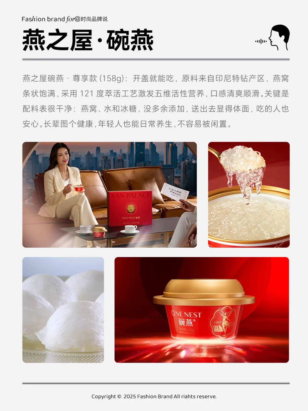 ⭐️拿燕之屋的碗燕·尊享款(158g)举个例子:原料严选1%印尼雨林高品质燕窝,每碗燕窝浓稠料足,而且燕窝酸含量高,还有碗燕特有的五维活性营养,滋补效率高。配料表干净,只有燕窝、水和冰糖,还可以选择无糖款,孕妇、老人控糖也能吃。送出去显得体面,吃的人也安心。长辈图个健康,年轻人也能日常养生,不容易被闲置。