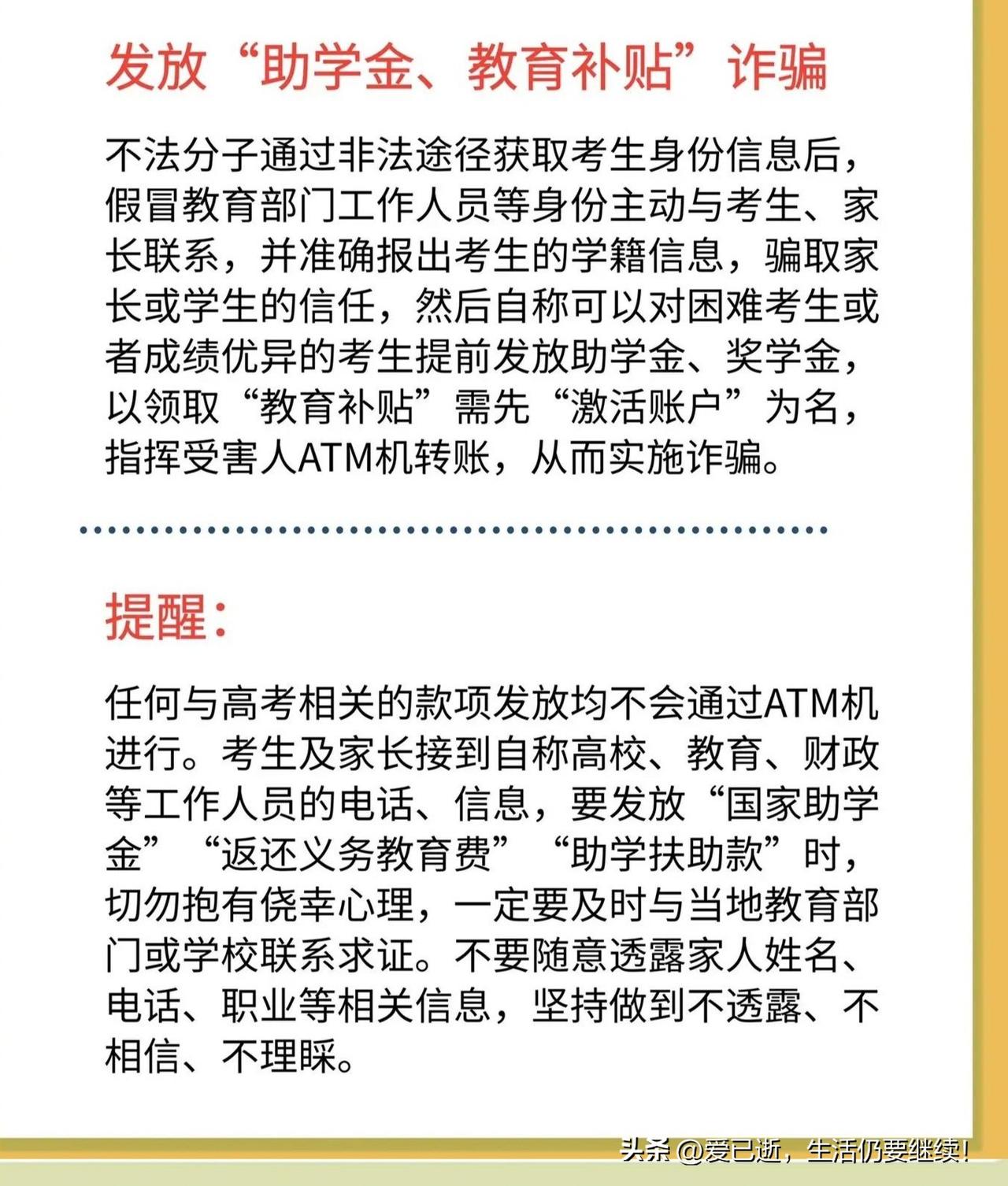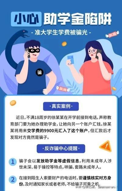 网络电信诈骗再出新招!专门针对学生和学生家庭 电信诈骗手段百出,让人防不胜防。同时也让无数受害者及家庭深受其害,让无数人深恶痛绝。 虽然世界各国都在严厉打击电信诈骗,但仍有些人挺而走险、顶风作案。现在就有专门针对学生和学生家庭场景设计的电信网络诈骗新花样:利用学生奖学金、困难学生补助、学校退费等名目已经造成部分学生和家庭损失案例了。所以当收到或接听到类似消息与电话时,一定要多方核实,警慎处理。 警方明确告知:正规补贴发放绝不会通过私人链接、非官方平台要求填写银行卡密码、验证码等敏感信息,学校官方通知也会通过正规渠道统一发布,遇此类异常要求,直接判定为诈骗。诈骗 网络陷阱诈骗 电诈套路 电骗骗局 电信诈骗罪 诈骗教程 针对学生骗局