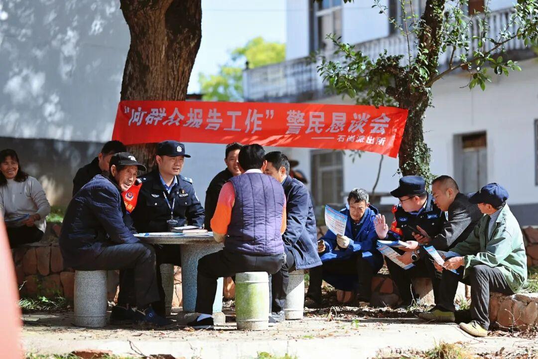 浓密的树荫下,民警紧密结合农村治安特点,用通俗易懂的家乡话和发生在周边的真实案例,向乡亲们通报了近期辖区治安状况。针对农村地区易发的家禽家畜盗窃、农资诈骗、以及因田间地头、邻里纠纷引发的警情,民警进行了深入浅出的剖析,重点讲解了具体的防范措施。