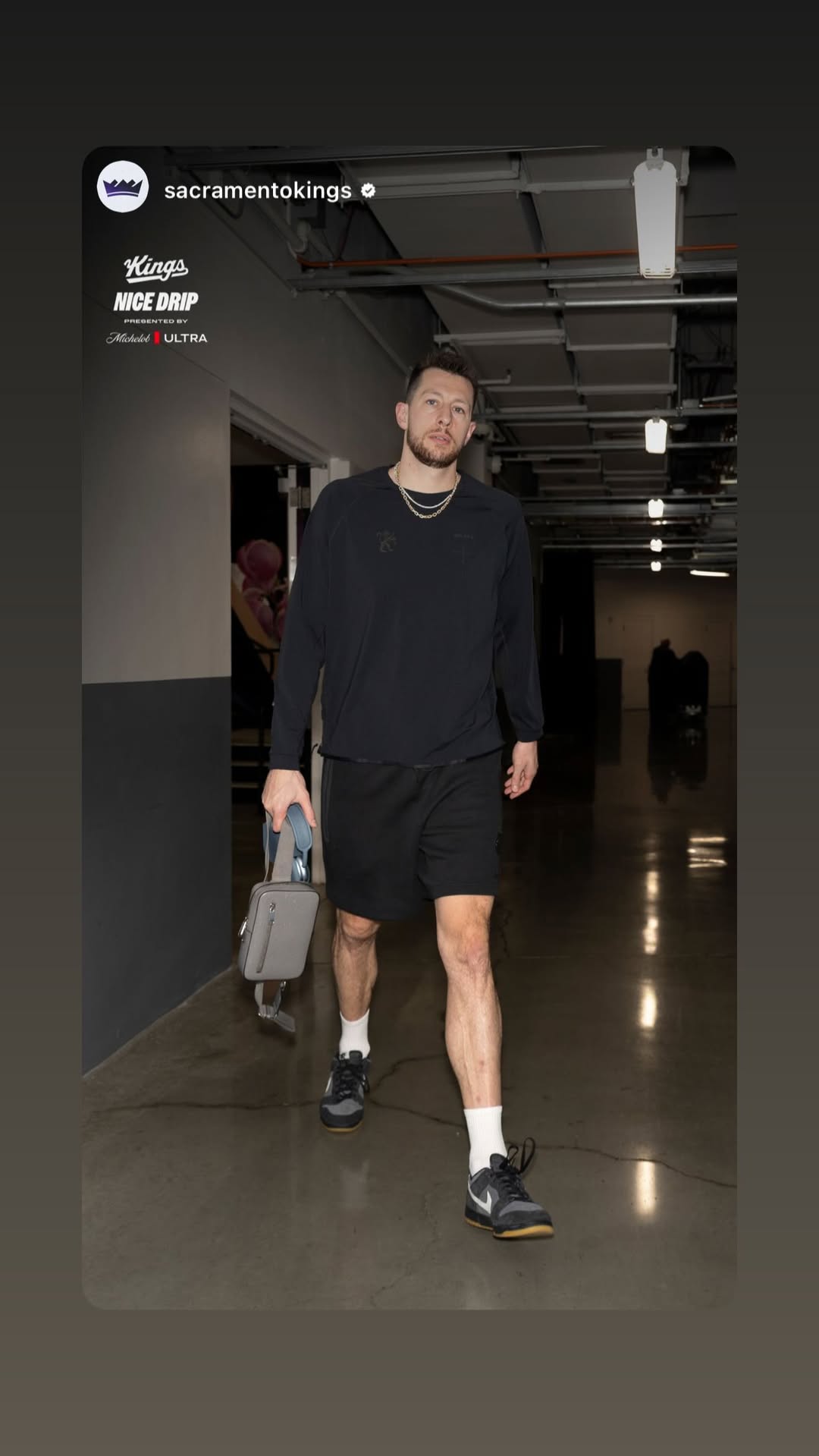 虎扑12月01日讯国王球员德鲁-尤班克斯更新个人社媒,晒出今日赛前入场穿搭照片。