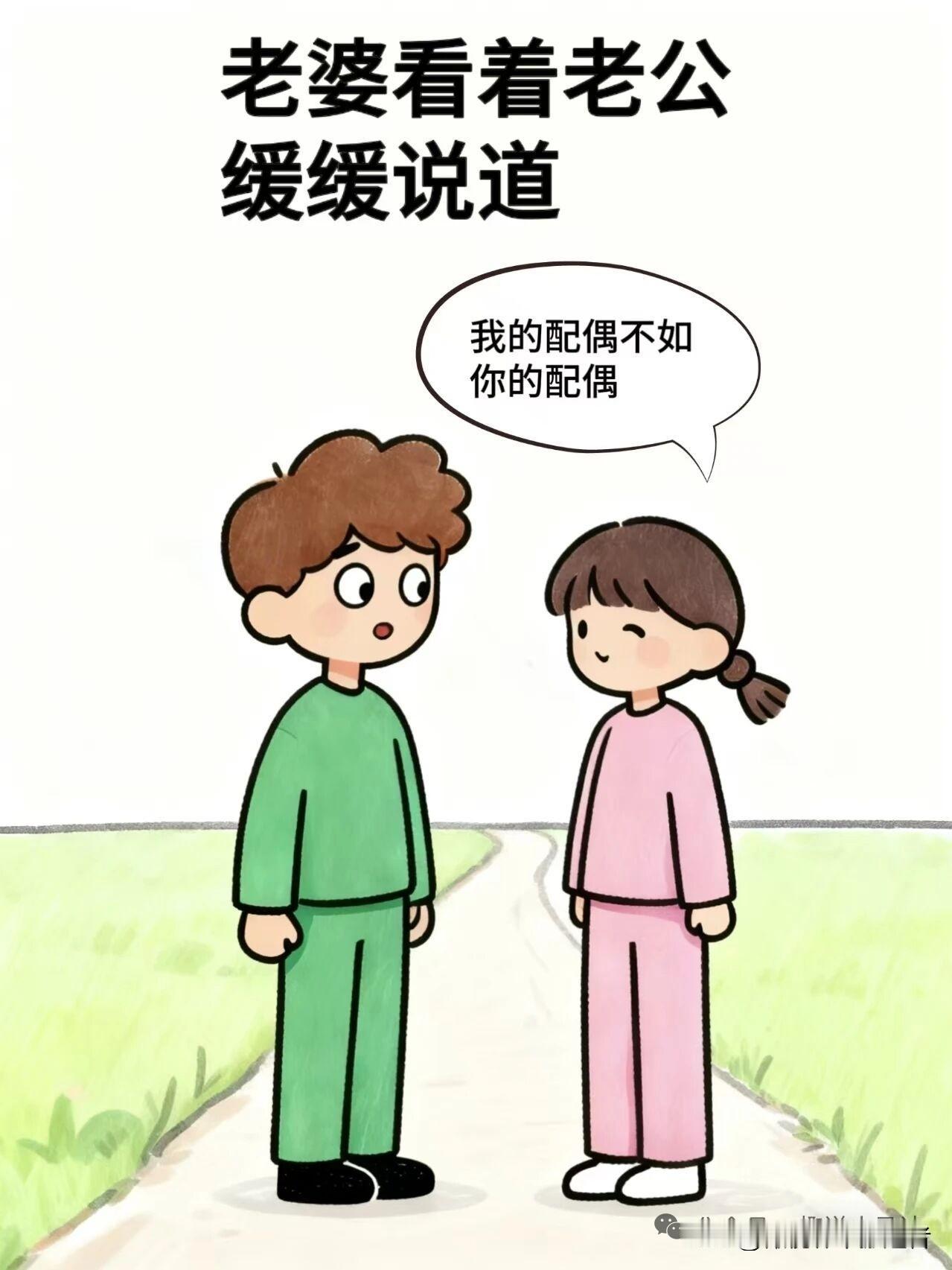 趣味漫画:老婆:从各方面看我都强于你,唯有一点我不如你,老公心中暗喜:哪一点不如我呢?老婆看着老公缓缓说道:我的配偶不如你的配偶