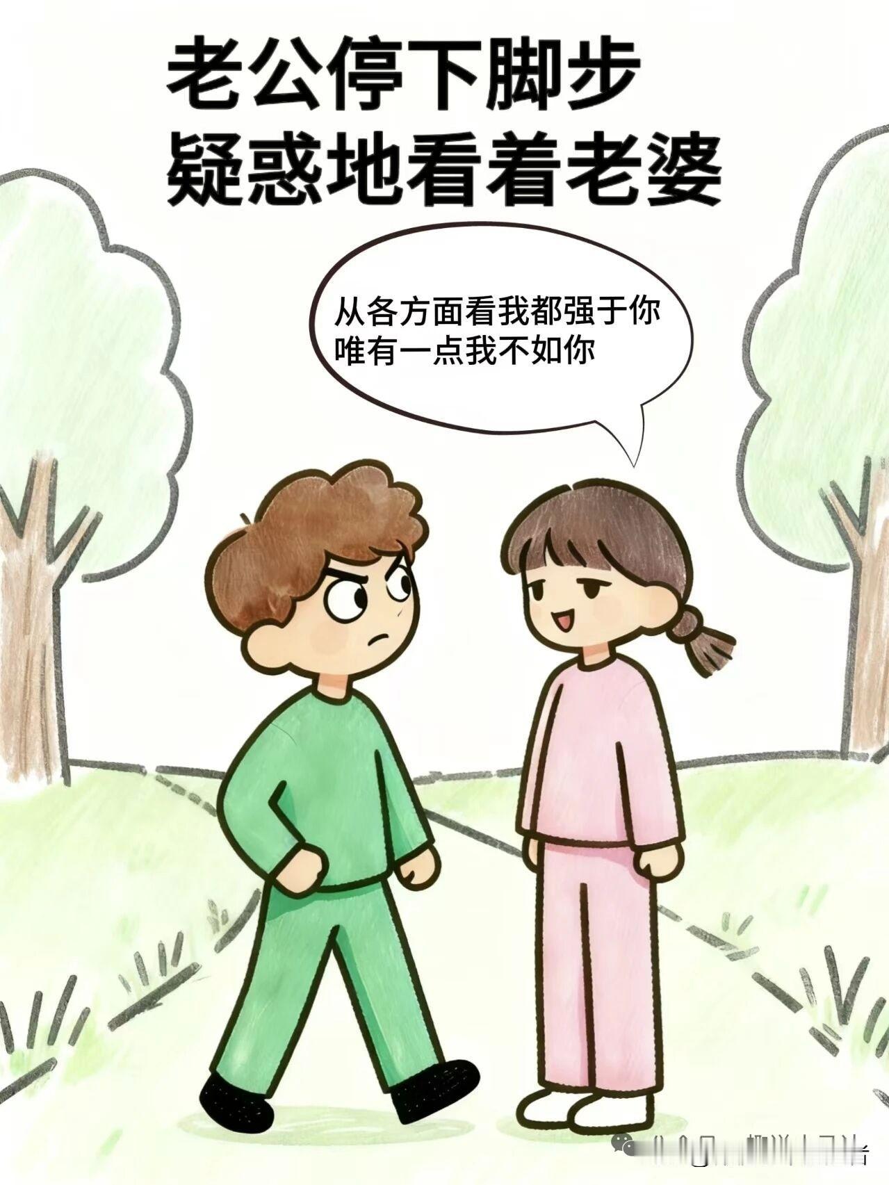 趣味漫画:老婆:从各方面看我都强于你,唯有一点我不如你,老公心中暗喜:哪一点不如