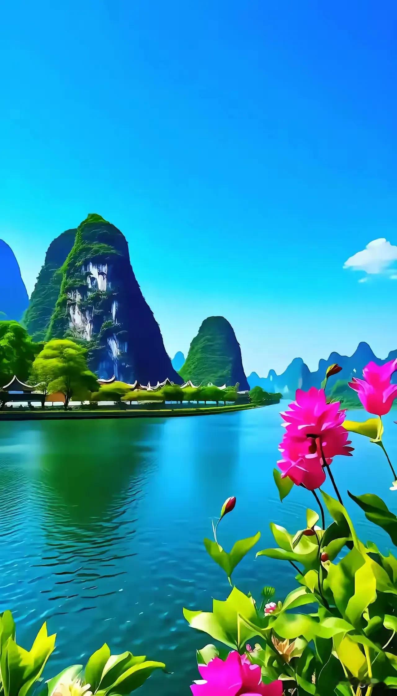 上联:雨润繁花添锦绣 下联:云𤉋霞蔚染丹青 横批:江山如画