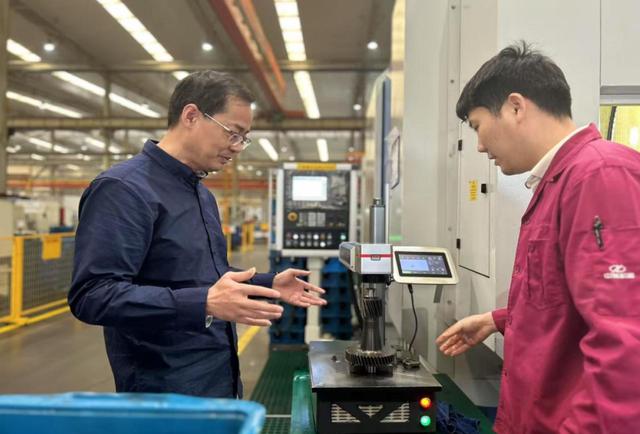 驻企服务员在浙江中柴机器有限公司了解企业生产情况