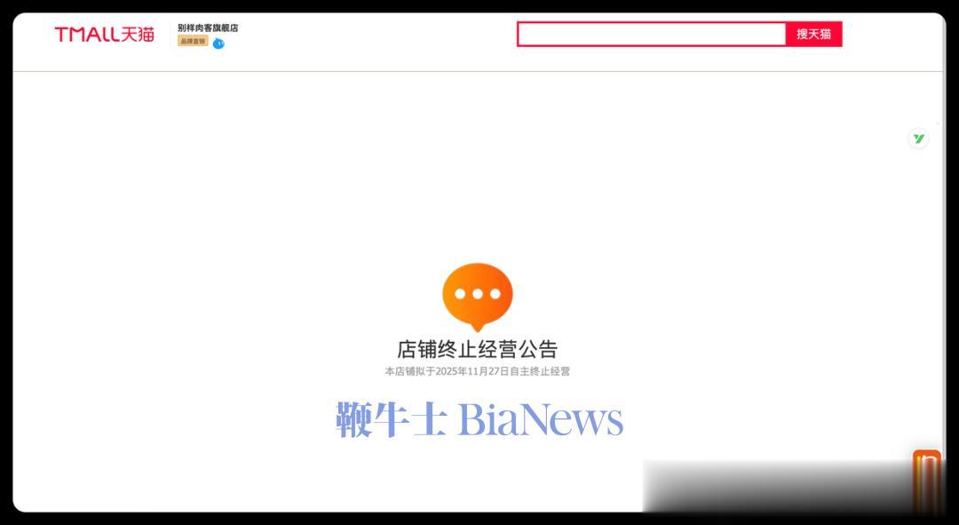 近日,美国人造肉品牌“别样肉客(BeyondMeat)”驻天猫官方旗舰店发布公告,宣布于11月27日自主终止经营。
