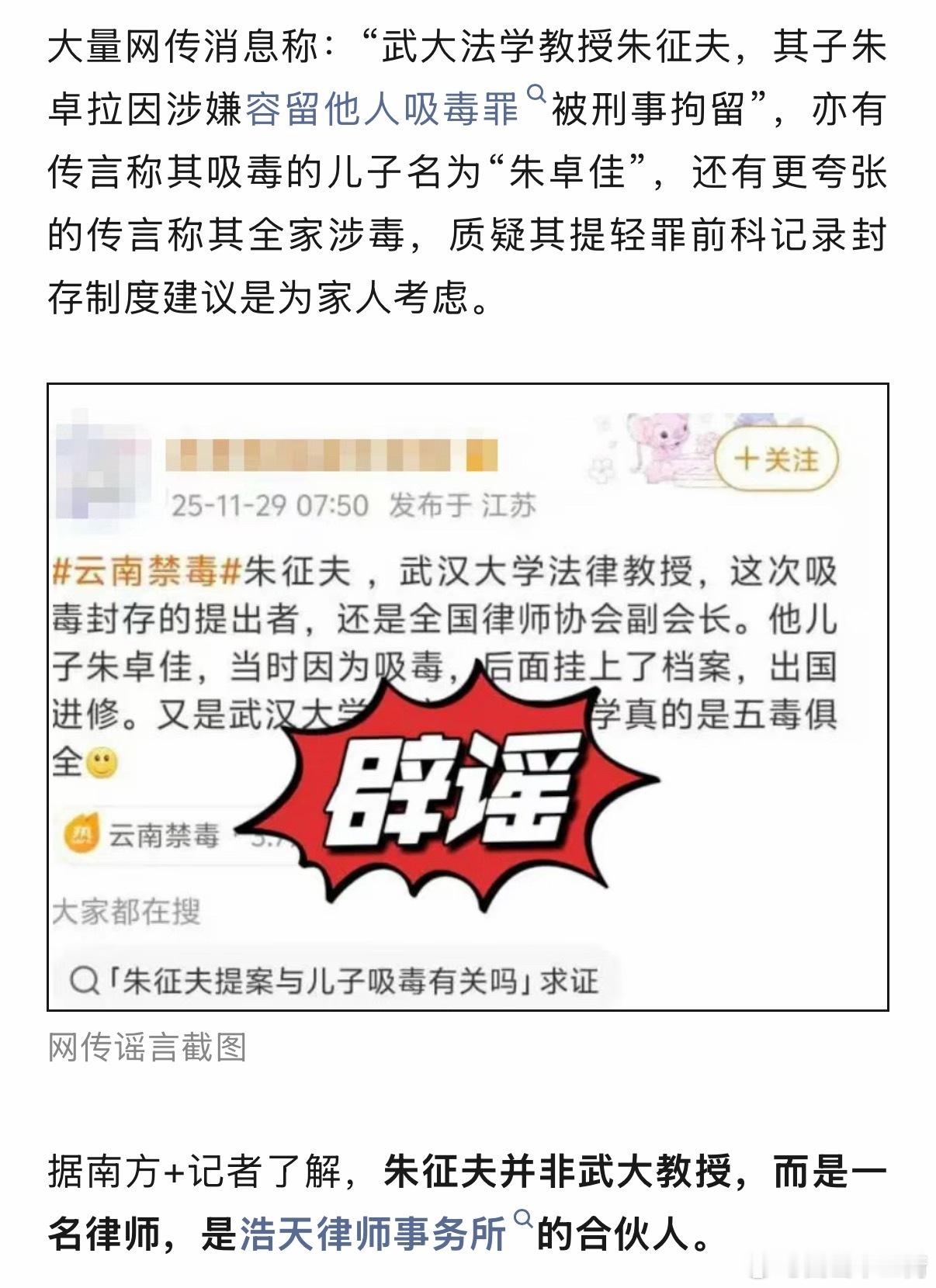 朱征夫回应:自己没有一个叫「朱卓拉」或者「朱卓佳」的儿子,称家人从未吸毒&涉毒,