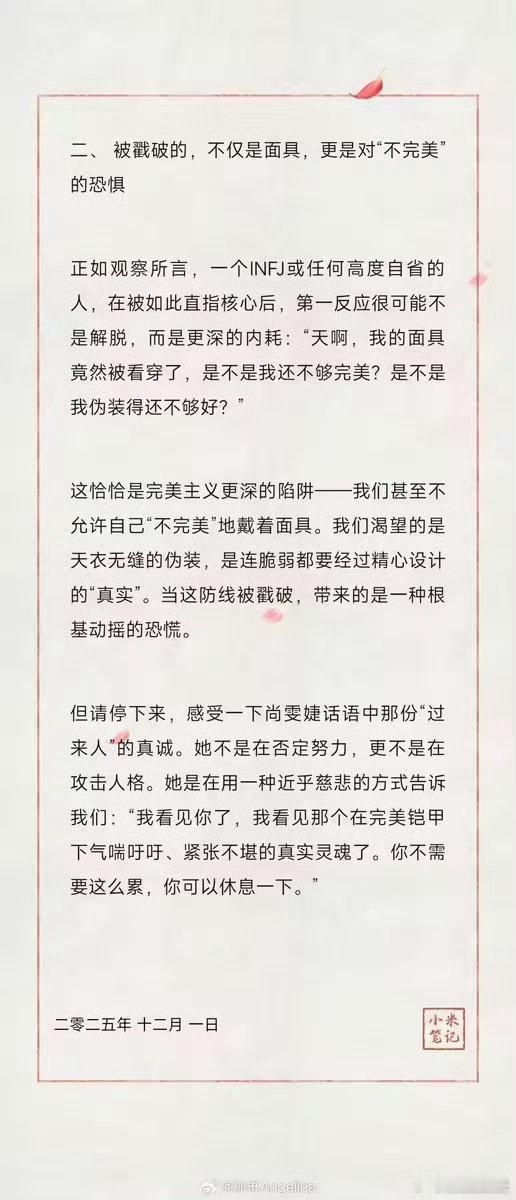 内耗人多听听尚雯婕这段话声鸣远扬 尚雯婕这段话太戳心了!瞬间戳中内耗人的心声,听完心里豁然开朗,好像一下子就有了和自己和解的勇气。