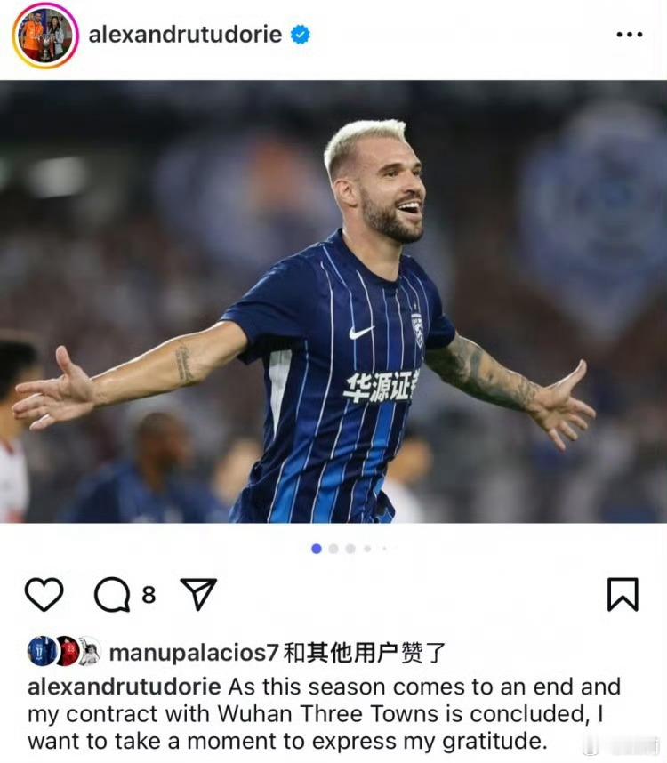 深圳新鹏城刚刚看到武汉三镇外援图多列在社媒上发布自己离队的消息,表达了对俱乐部的