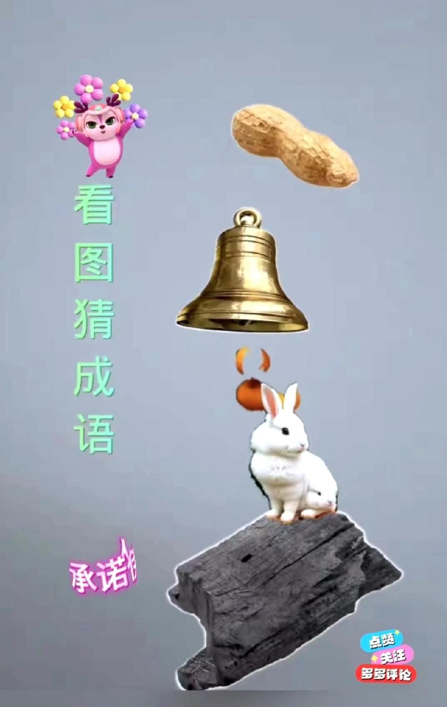 这道“看图猜成语”火了!花生、铃铛、兔子、木头,评论区有人1秒答出,你呢?
