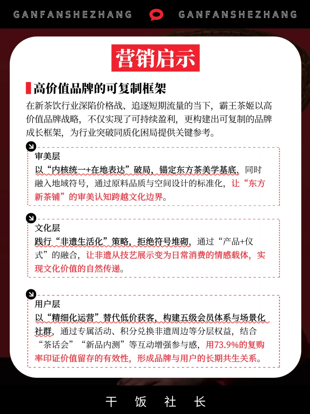 霸王茶姬立足“现代东方茶”的全球化战略定位 构建起一套涵盖审美、文化与用户价值的高价值品牌体系。 其核心逻辑在于🎯 不依赖低价换取规模,而是通过传统美学的现代表达、文化IP的深度运营,与会员生态的精细化运营,打造难以复制的品牌护城河 从美学符号到文化认同,从单次交易到长期共生 霸王茶姬的实践证明👉 在消费升级浪潮下,品牌的价值天花板从来不取决于价格带,而在于能否为产品注入文化内涵与情感连接🌟 霸王茶姬品牌策划品牌营销商业思维干货分享品牌解析