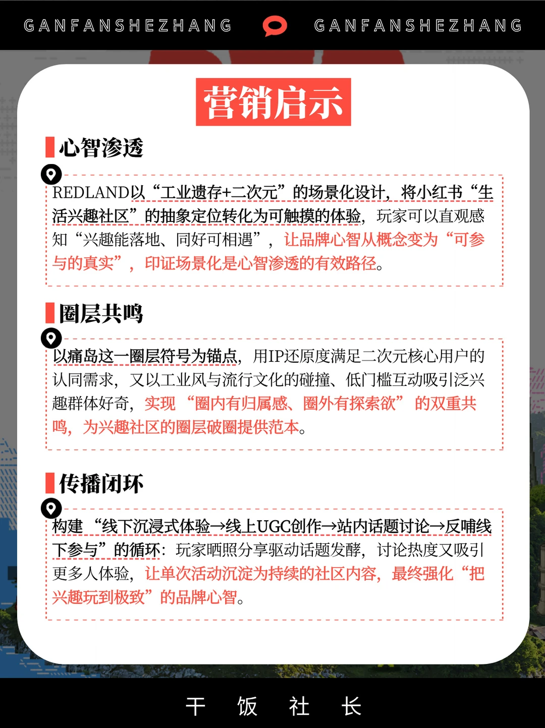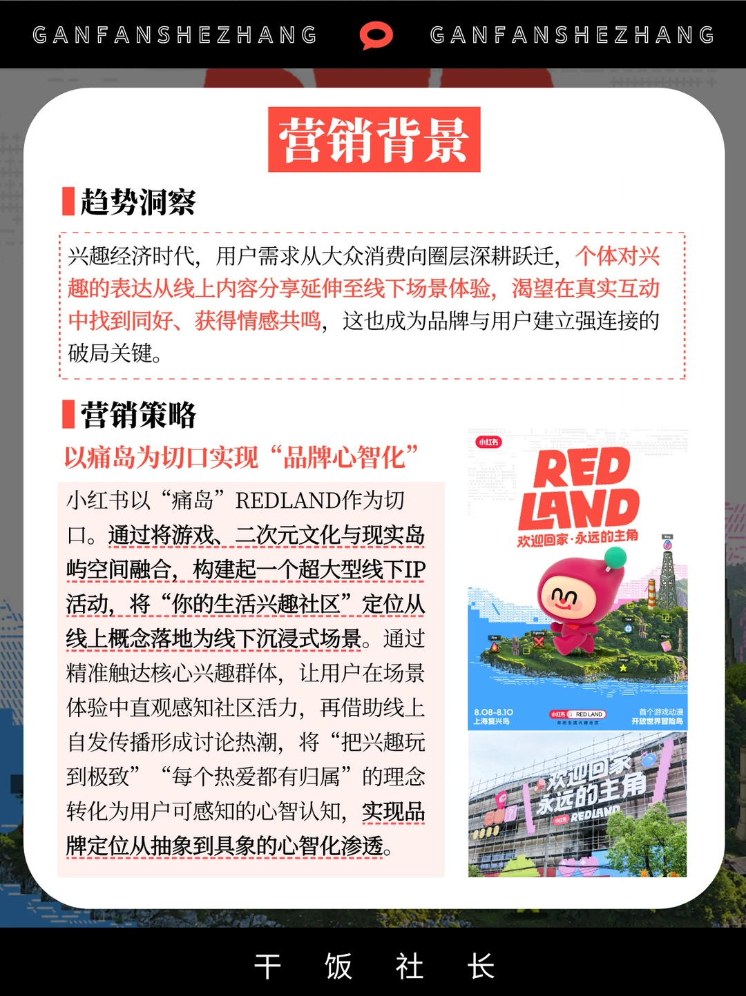 近期,打造全球首发的二次元痛岛REDLAND,引发全网热议[火R] 这场事件不止是一次线下曝光,更是对“你的生活兴趣社区”心智立体化、场景化的表达💓 以“痛岛”这一二次元圈层标志性符号为载体 精准触达核心兴趣群体 线下通过沉浸式场景让用户感知社区活力 线上依托自发传播形成讨论热潮 从玩家晒体验到路人围观 从圈层内共鸣到破圈扩散 既强化了“把兴趣玩到极致”的社区标签 又让“每个热爱都有归属”的心智深入人心 印证了场景化营销对品牌心智渗透的强大力量💪