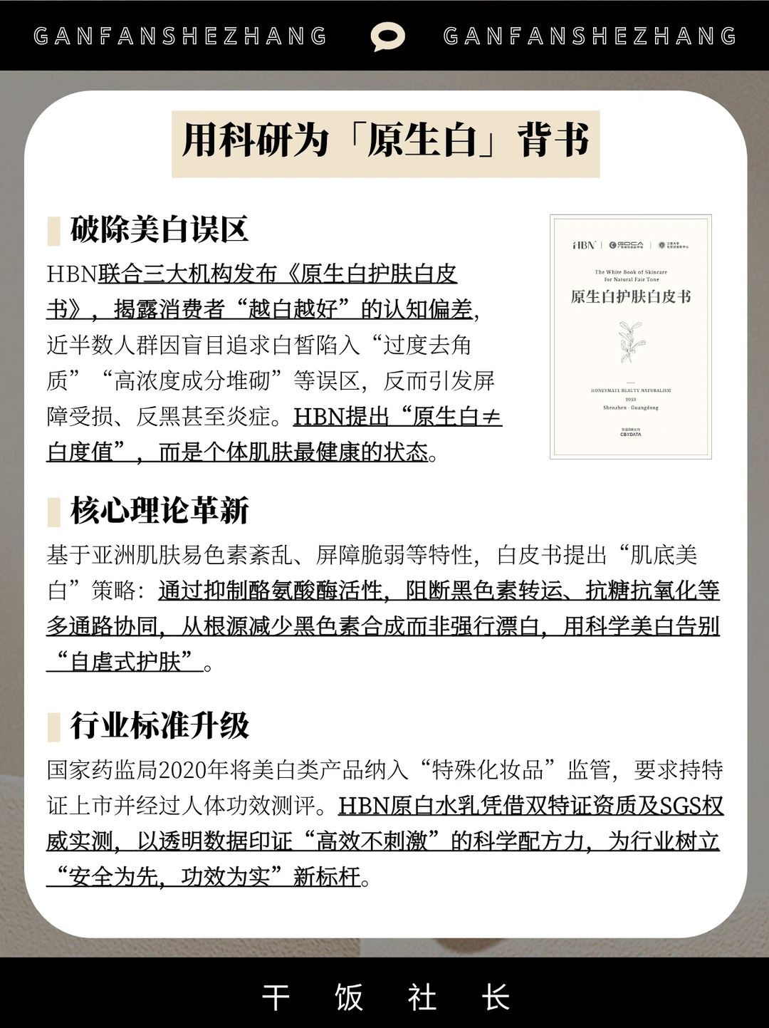 当护肤品陷入成分内卷 HBN携手全球色彩权威PANTON潘通开辟新赛道 双方深挖五千年东方肤色美学 以「原生白」科学理念 打破“越白越好”的认知误区 通过古籍文献色卡具化中国肌理想状态 将抽象肤色转化为可感知的潘通色彩系统 此次跨界不仅是视觉升级 更是以CNAS实验室+2000+人体实测为基底 用色彩语言传递「肌底美白」的科学逻辑 最终落地的原白水乳套组 以α-熊果苷+复合抑黑科技实现双特证加持 让「文化审美」与「真功效」完成闭环