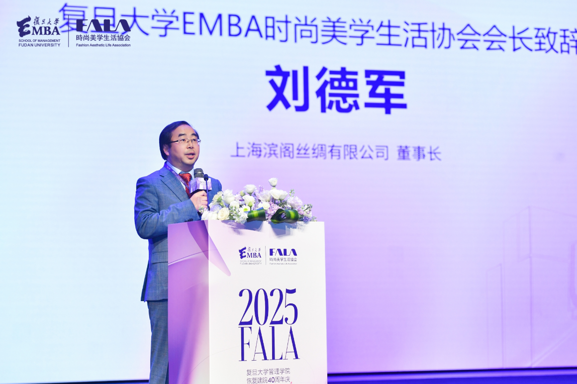 论坛伊始,复旦EMBA时尚美学生活协会会长刘德军代表承办方致辞。他指出,协会已从内部精英分享平台发展为开放性的产业对话舞台,并提出了四大产业展望:在价值回归时代聚焦负责任的美学理念;在科技赋能下实现AI对设计至营销全链路的重塑;通过文化融合推动东方美学影响全球潮流;将生活美学从服饰领域延伸至全方位生活场景。刘德军强调,协会将依托上海独特的创新基因与复旦大学深厚的人文智慧,构建具有国际视野的产业对话平台,与行业同仁共同"定义和共创未来"。