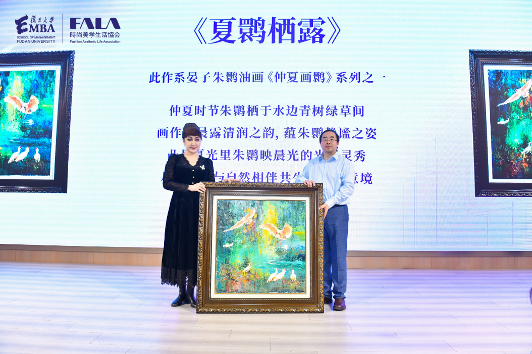 晚宴现场,朱鹮IP的创新实践成果令人瞩目。巴黎欧莱雅集团从朱鹮羽翼间萃取独特的"朱鹮红"推出彩妆系列;捷克欧若拉水晶将朱鹮优雅凝铸成艺术珍品;上海莉莉丝科技让朱鹮飞入游戏世界;玛戈隆特骨瓷的"朱鹮盛柿"系列、滨阁丝绸的朱鹮元素丝巾等产品,完美诠释了中国生态IP与艺术创意的深度融合。这些创新实践,充分体现了复旦EMBA时尚美学生活协会所倡导的"在实操中感悟美学,提升生活品味"的理念。