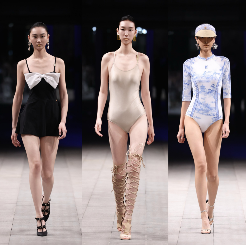 秀场灯光亮起三大代表性中国品牌以多元美学语言诠释"时尚无界"的主题。独具匠心的电梯登场设计,结合高空视角与院区景致,营造出震撼的沉浸式体验。中国时尚泳装与防晒品牌范德安展示兼具科技面料与潮流设计的明星单品;
