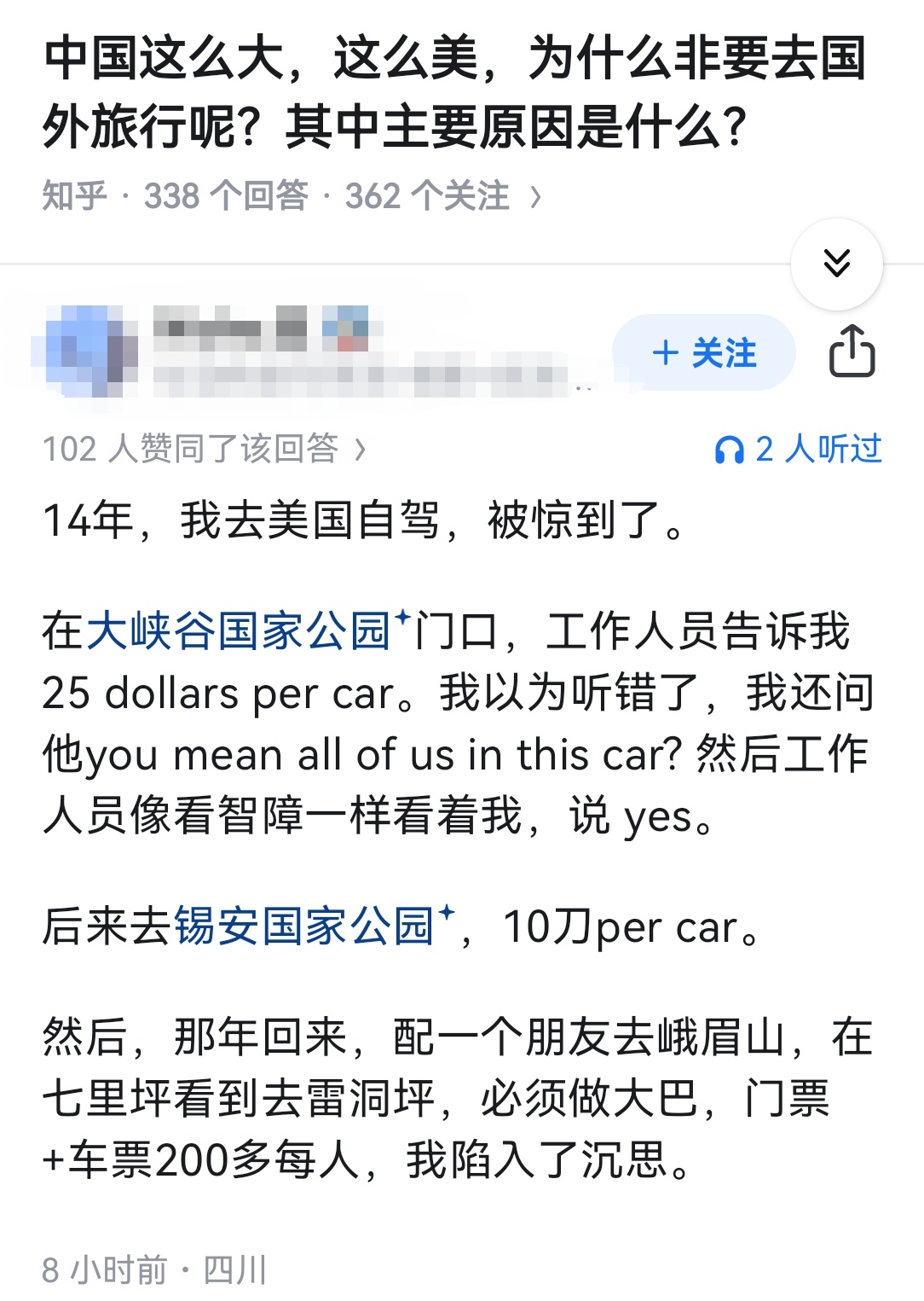 中国这么大,这么美,为什么非要去国外旅行呢?其中主要原因是什么?