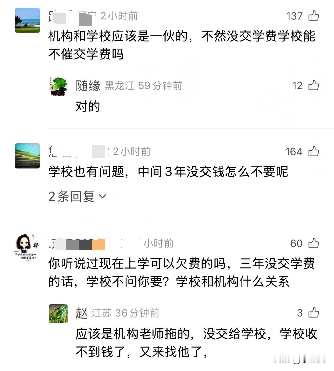 “我的学费去哪了?”河南郑州,女孩在教育机构报名高起本药学专业,每年交给机构2500元学费,谁知5年后毕业,学校却通知女孩要补缴学费,女孩一下子就懵了,找到机构校长要钱,然而却被校长拉黑了! 原来女孩不知道可以直接缴费给学校,每次都是交给教育机构,再转给学校,直到毕业后,才知道3年的学费,机构根本就没有帮她交上。 女孩得知情况后,打电话给机构校长要学费,他却说:“你骂我,起诉我都可以”,最后挂断电话,并且拉黑了女孩。 没有办法,女孩只有找到记者帮忙,可这位校长却不打算解决问题,最终只能投诉到市场监管部门。 教育机构把人家学生3年的学费占为己有,这种事都能干的出来,学生的钱都坑,一点良心都没有了,这不是明显的诈骗吗? 另外有关学校也是管理混乱,学生学费没交上,难道学校不知道吗?不需要承担责任吗? 建议女孩直接起诉教育机构,拿回属于自己的学费,坚决维护自身合法权益,大家说呢? (信息来源:都市报道)