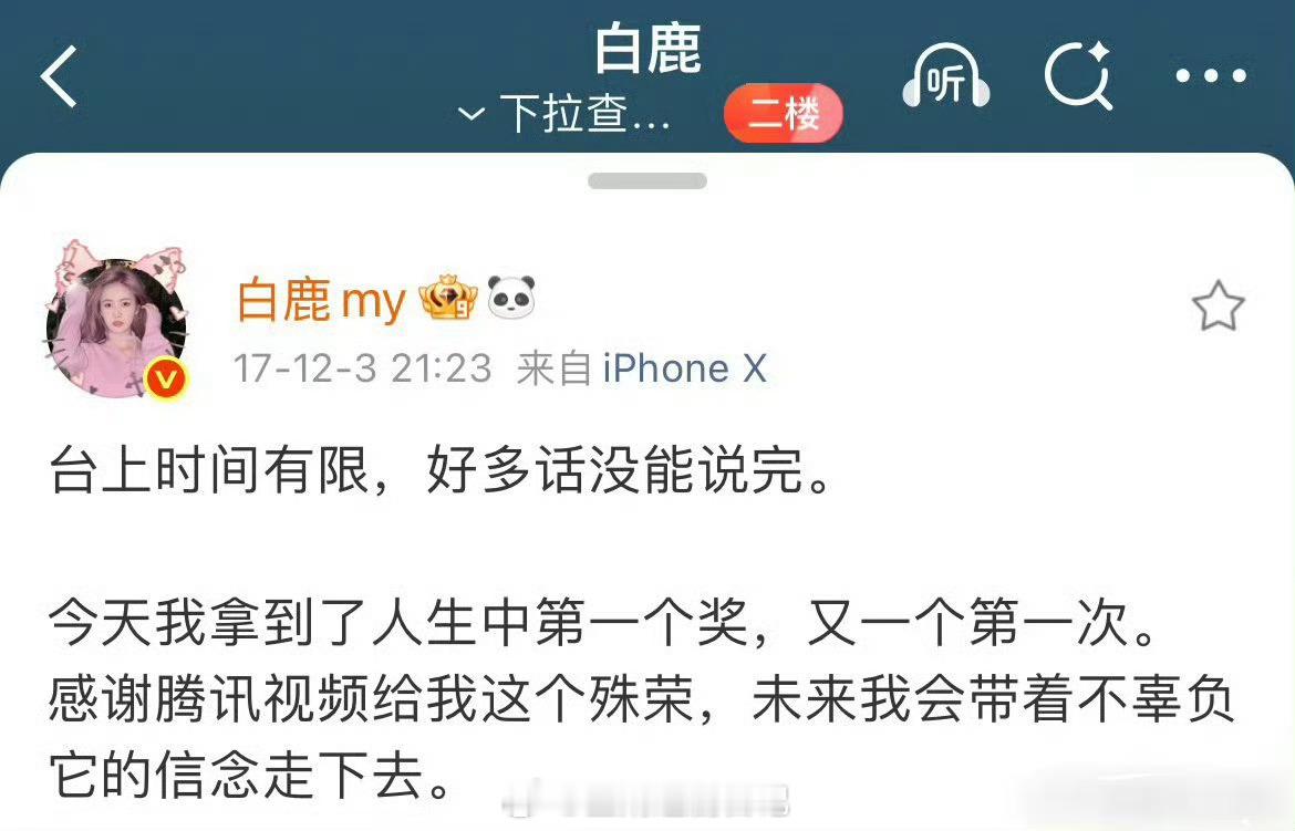 白鹿确认参加腾讯星光大赏,她在腾讯有一部待播剧叫莫离,白鹿星光大赏等你闪耀,一路走来太棒了!谁还上一次去星光大赏还是17年,那时候她带着自己的第一部作品参加并得了人生第一个奖。再次回归已然是星光熠熠的大明星。星光大赏