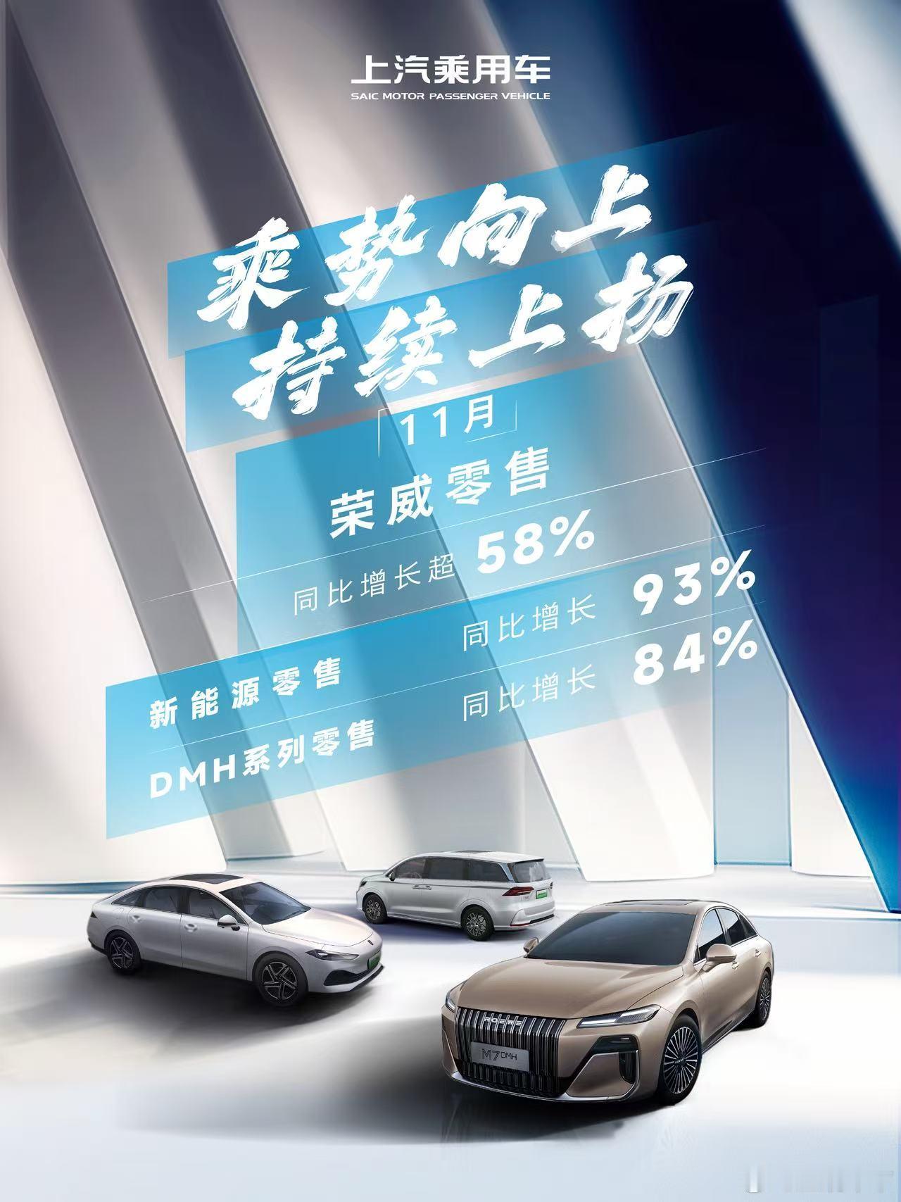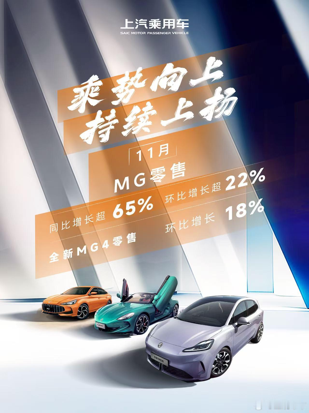 乘势向上,持续上扬 |上汽乘用车11月荣威、MG 零售销量超80,000辆,同比增长超10%