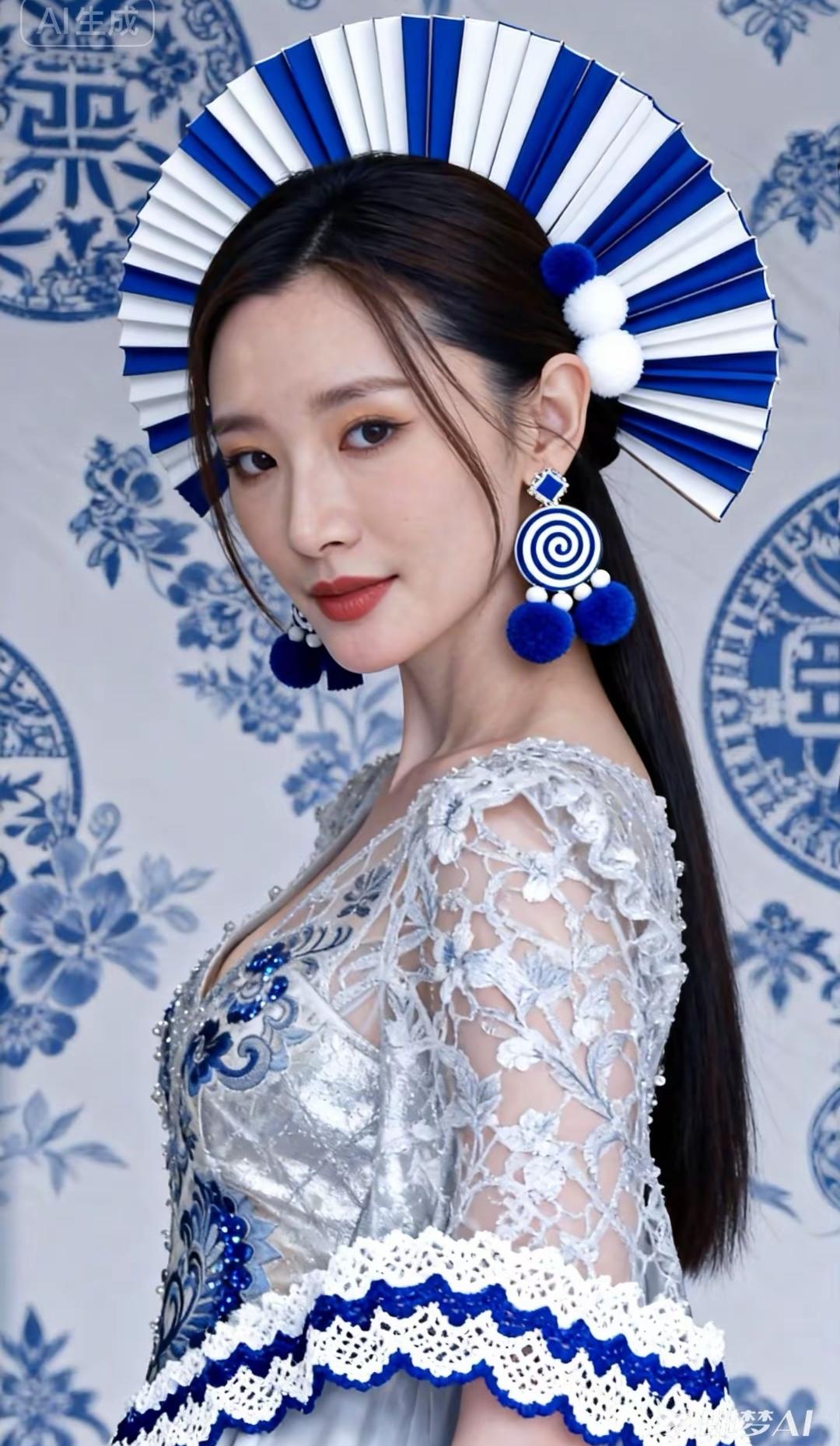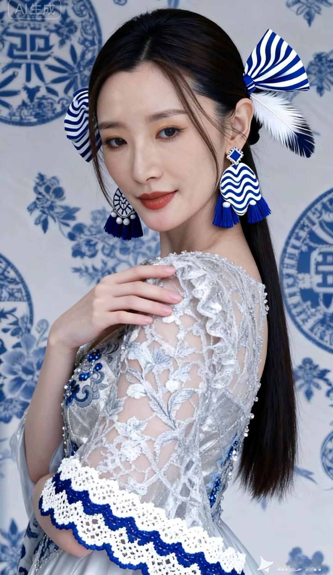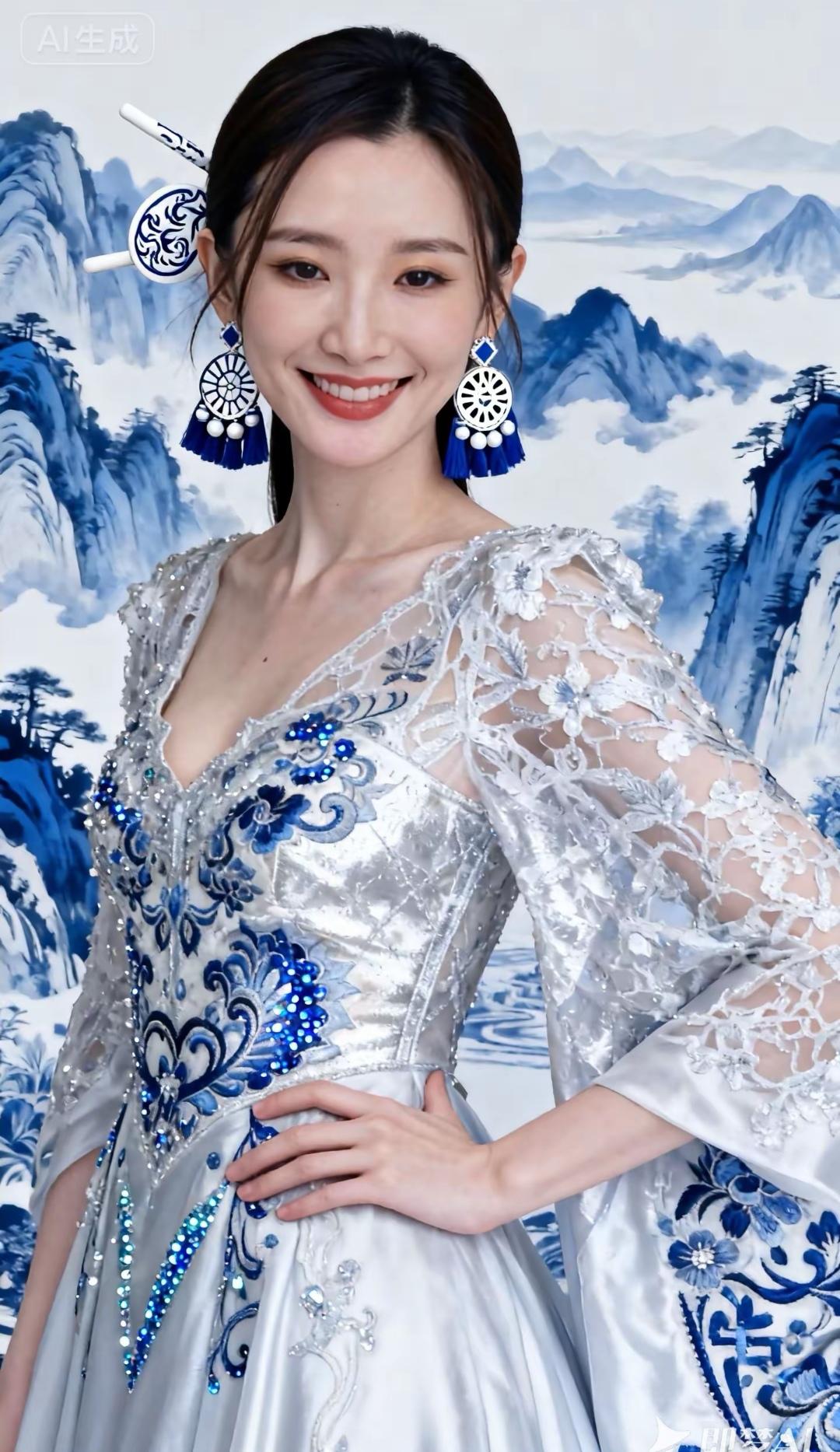从云锦的经纬里走出, 腰肢如明代青花瓷的曲线。