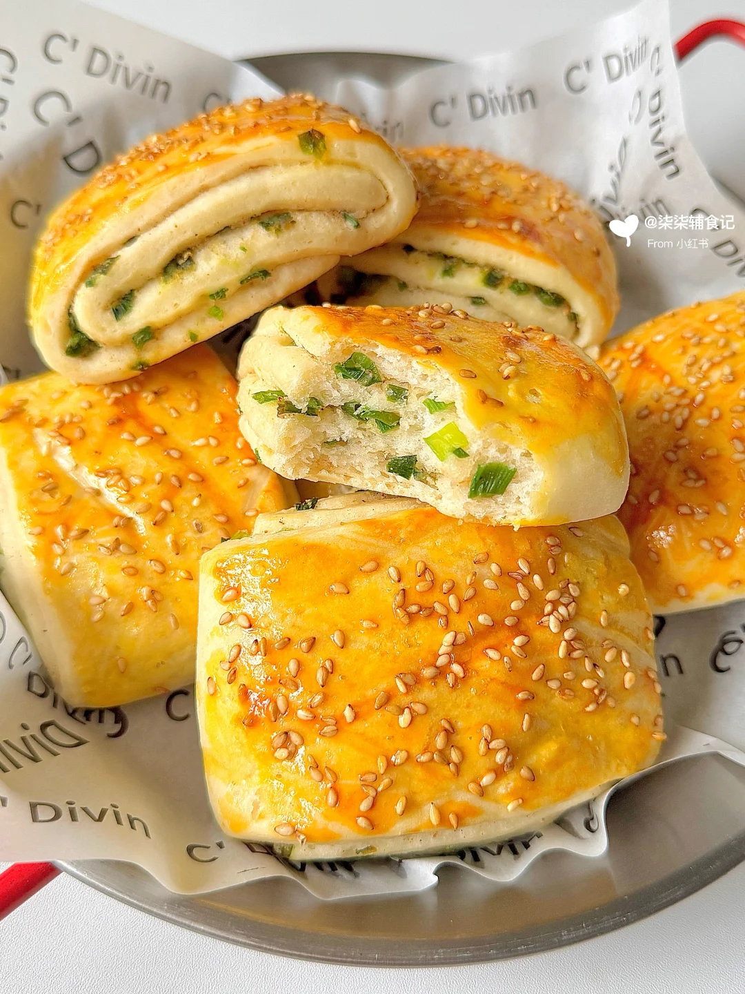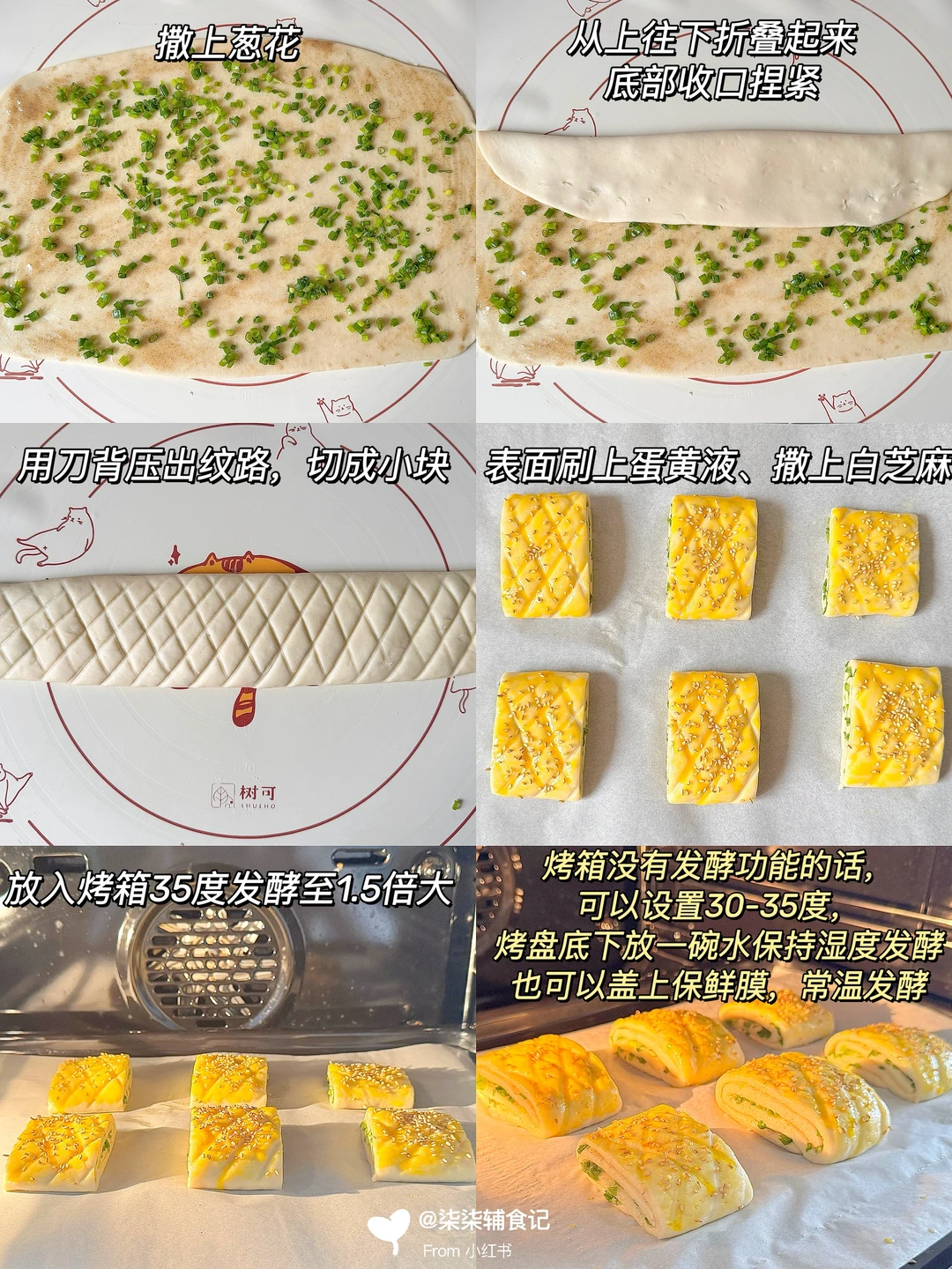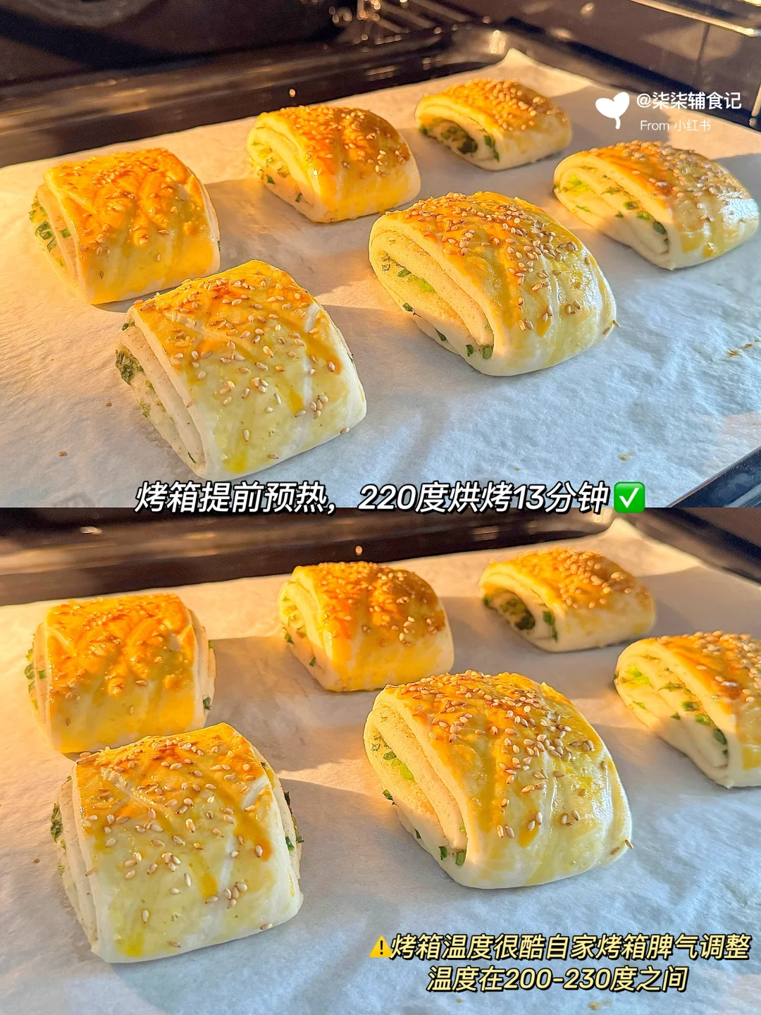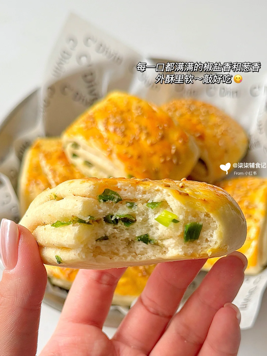 一定要试试,连吃三天都吃不腻的饼,一个个都外酥里软、葱香四溢♨️老少皆宜~全家都爱吃😋 做早餐或下午茶再适合不过啦[色色R]做法简单,快安排起来吧~ 🛒食材准备: 油酥:1勺椒盐+2勺面粉+4勺热油 面团:面粉200g、酵母2g、油10g、水100ml、葱花适量 🔺椒盐根据自己口味添加,葱花加多一点会更香哦! 🔺每个烤箱温度不同,烘烤中途记得多观察上色情况