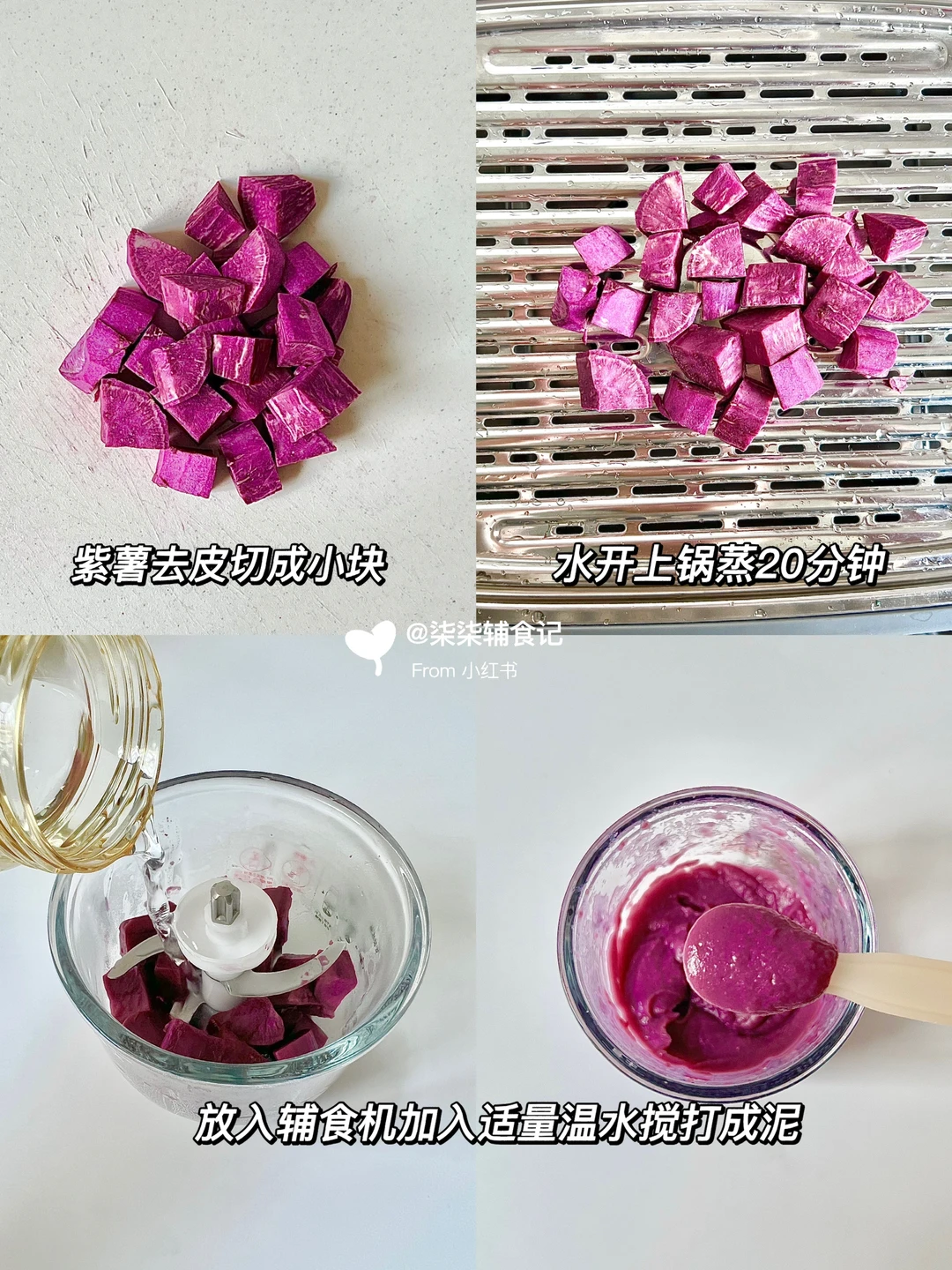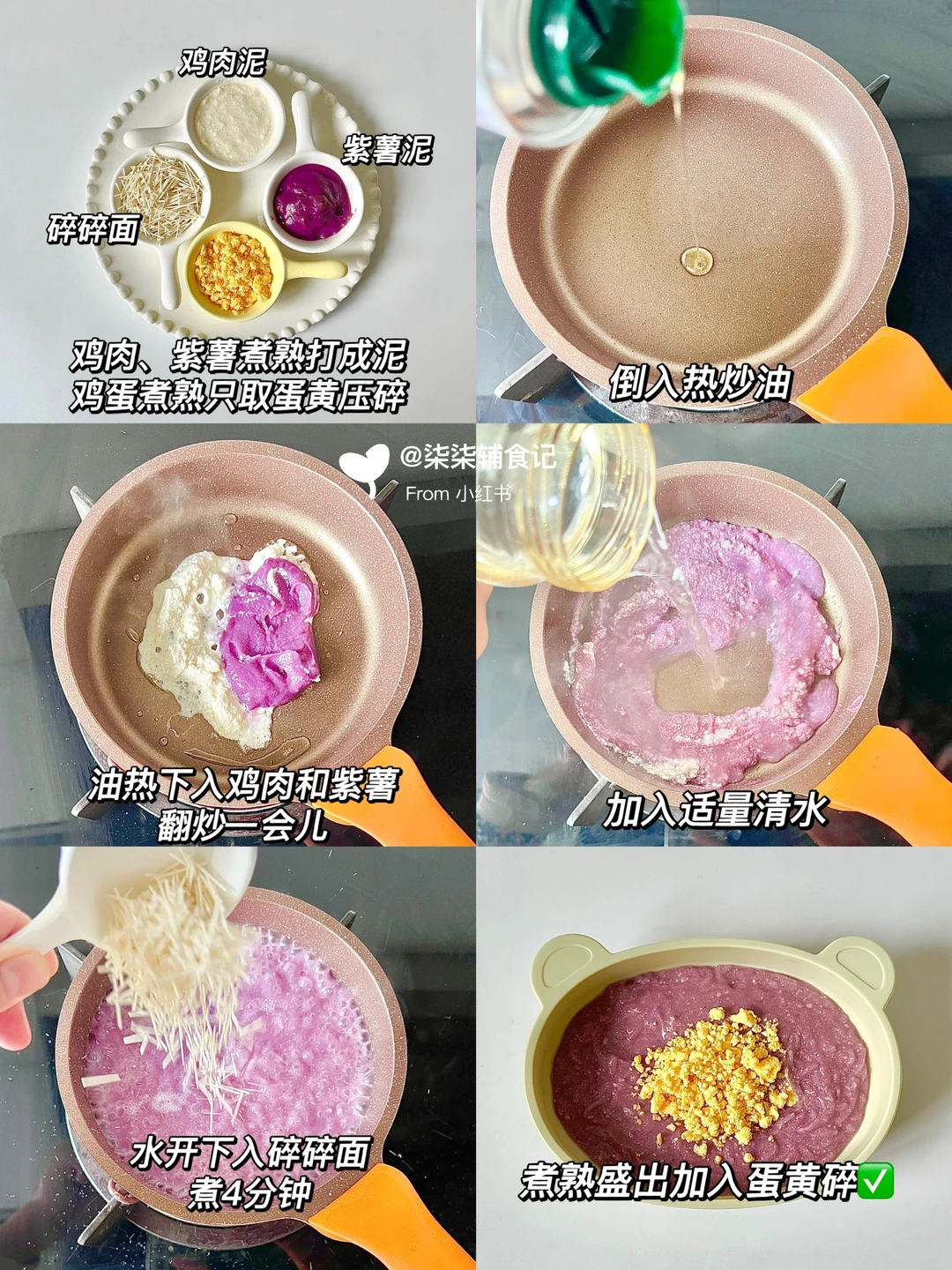 📝:10g碎碎面➕紫薯泥加鸡肉泥➕蛋黄碎