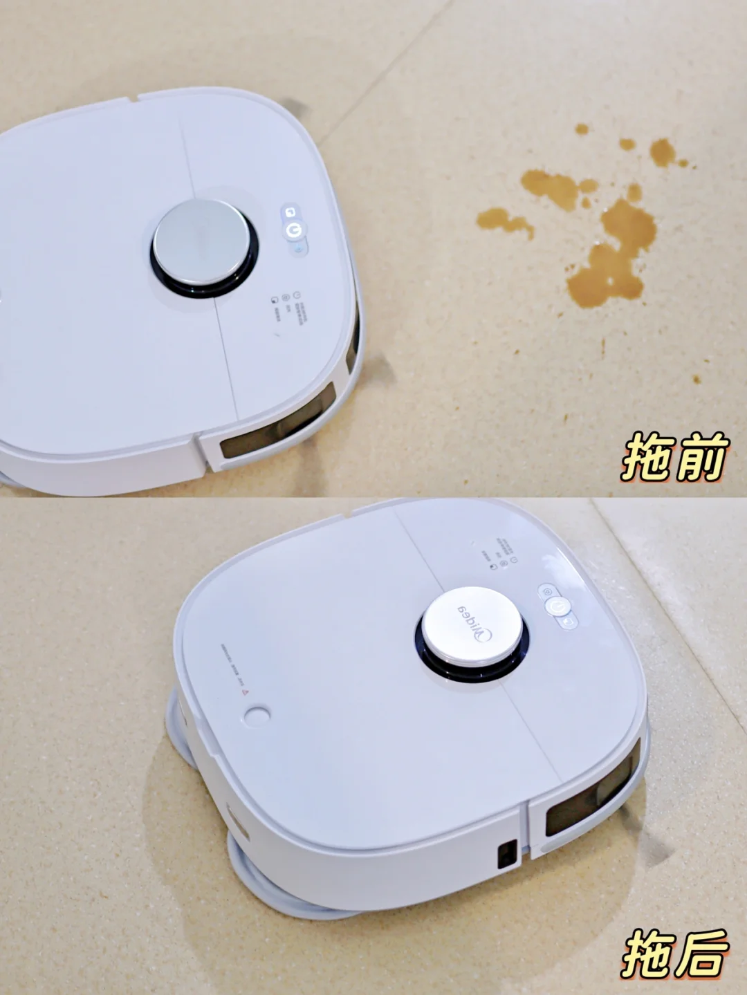 出水均匀,拖得干净:我之前自己做清洁的时候蕞担心Cyndi走路时容易摔倒,所以拖完之后地面要快速风干,不能留大片水渍[笑哭R][笑哭R]现在我只要在美的美居APP上点一下,它就开始清洁啦。目前是🈶️扫拖一体和仅拖地模式,后面随着APP固件升级,就可以实现先扫后拖和仅扫地🧹模式啦🤗目前来说,W11已经很够用啦👌🏻