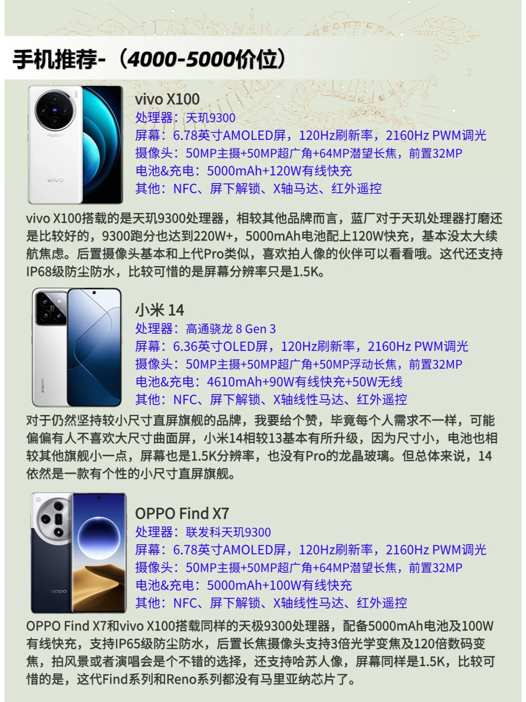 ③ 考虑上代旗舰,各方面都比较均衡的存在。预算高则可以考虑本年度旗舰。