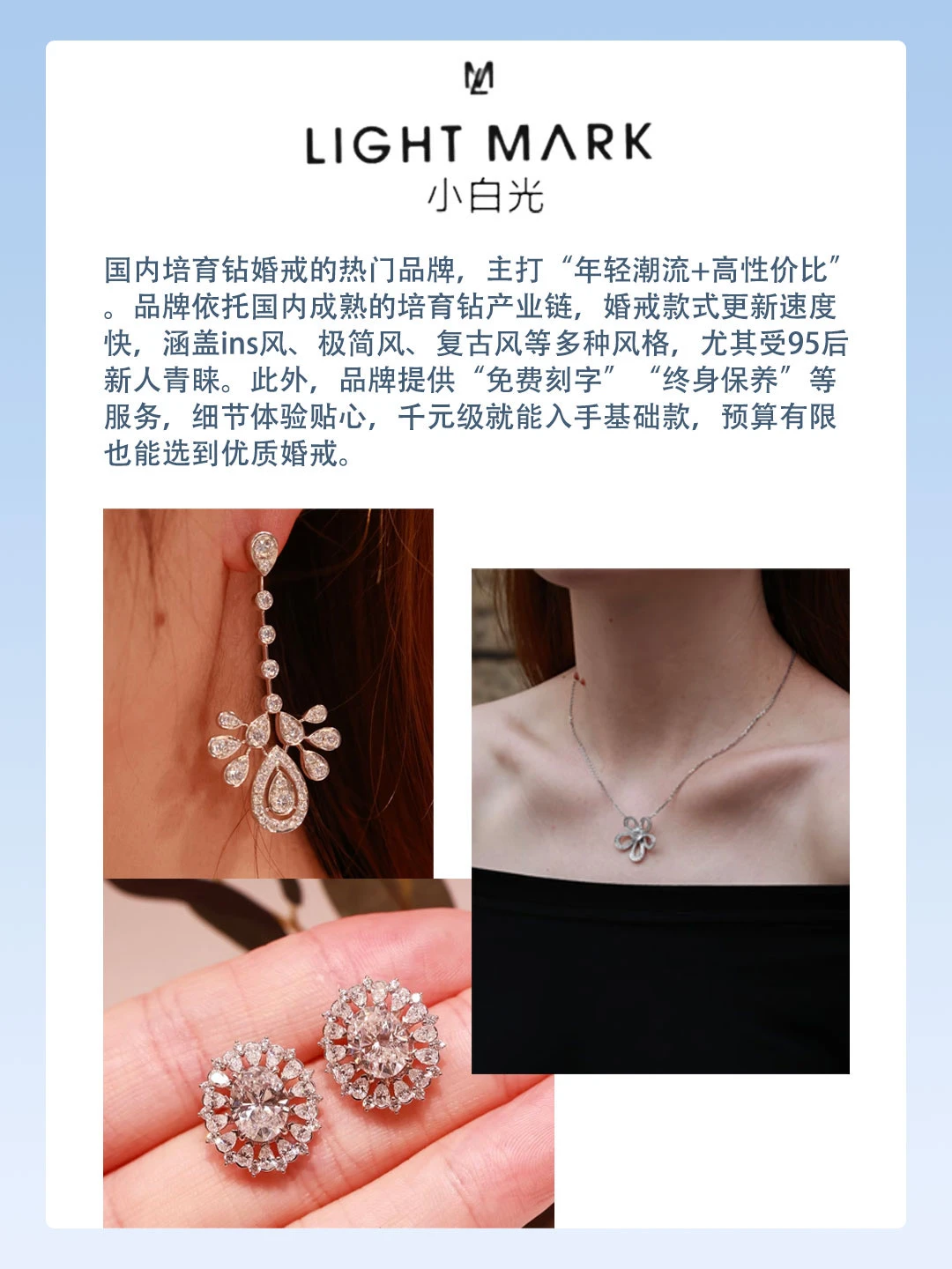 [萌萌哒R]婚戒是爱情与承诺的具象化象征,选择时既需兼顾款式美感、品质工艺,也离不开性价比与品牌口碑的考量。尤其在培育钻逐渐成为主流的当下,如何从众多品牌中挑选到契合需求的婚戒,成为许多新人的难题。[大笑R]以下结合“性价比、培育钻优势、热门度、用户口碑”四大核心维度,精选5大婚戒品牌,为你的婚戒选择提供实用参考哦: