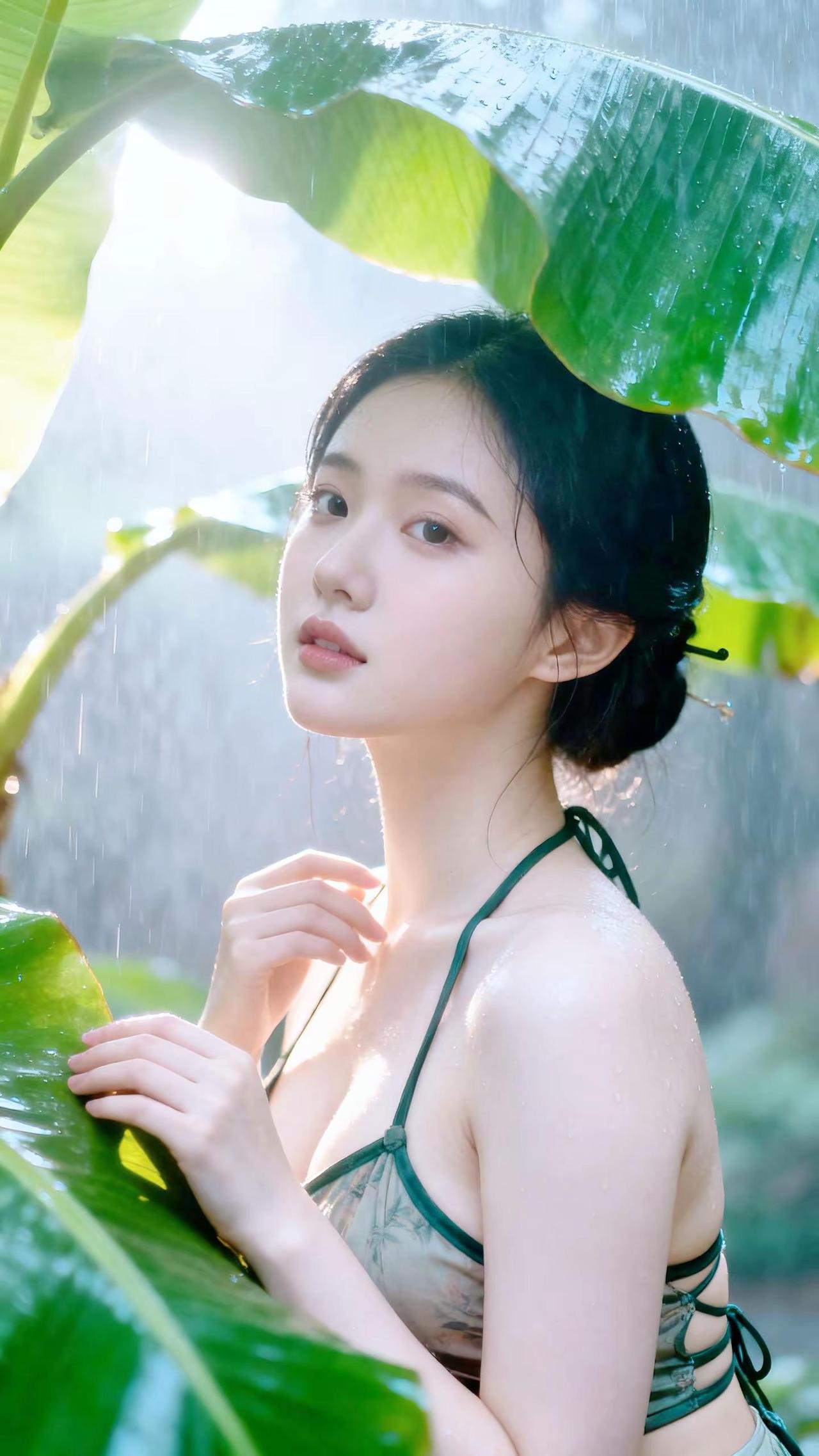 雨、芭蕉叶,像极了当年在后山坡躲雨的场景。那时候也这么拢着头发,我们没说太多话,可“分易分聚难聚”的滋味,到老了才尝得最透。“少年不经事的我”和“不经意的你”,早已被刻进红尘旧卷,一唱就热泪盈眶。日常分享 人像写真 摄影分享 创意制作