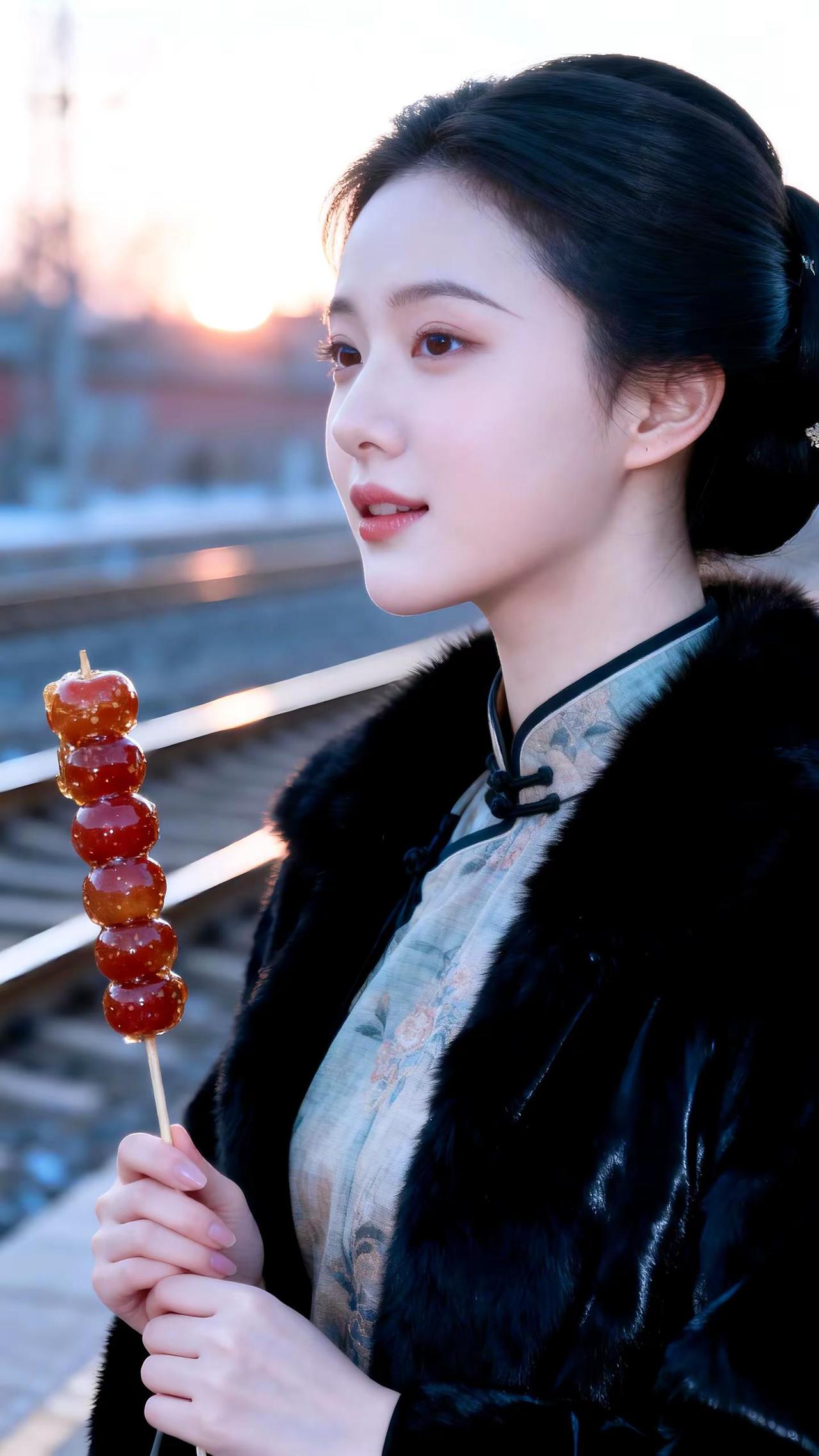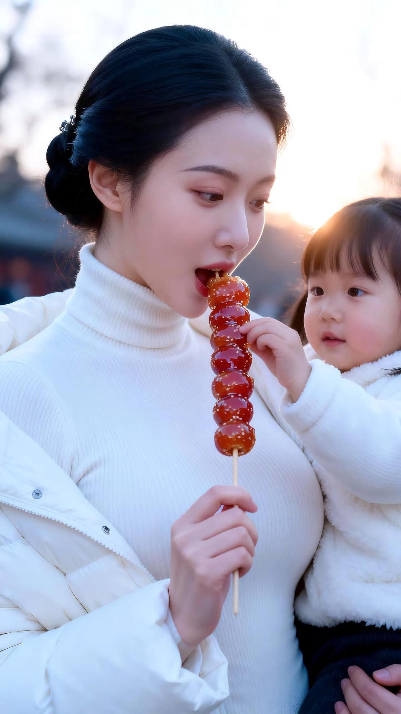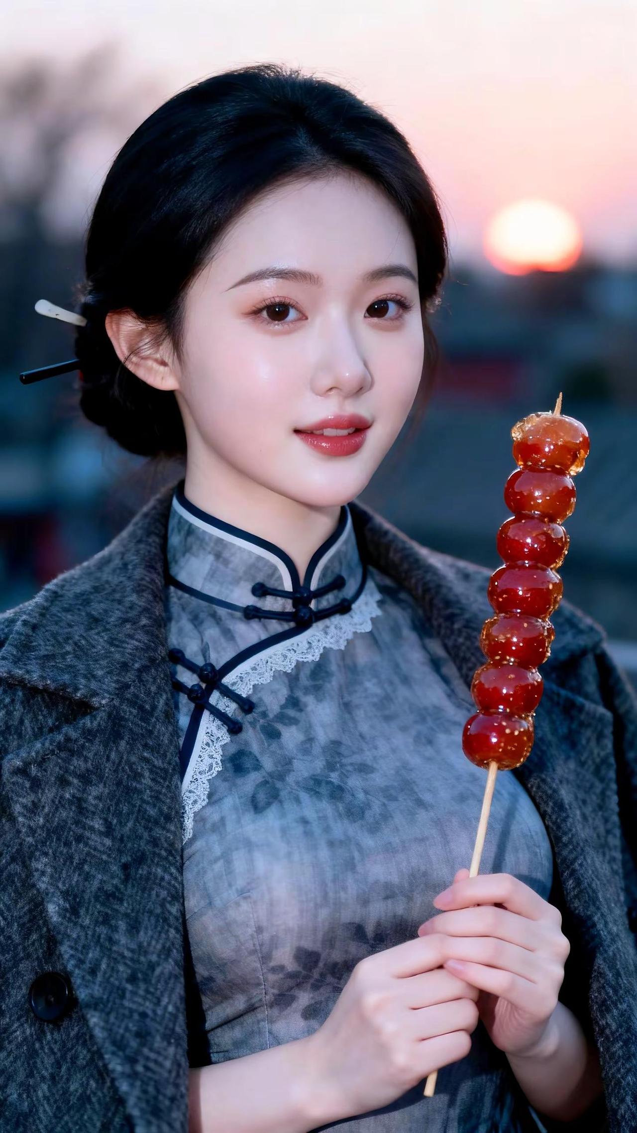 夕阳把糖葫芦的糖衣照得发亮,就像小时候妈妈举着它递到我面前的样子,你童年的冰糖葫