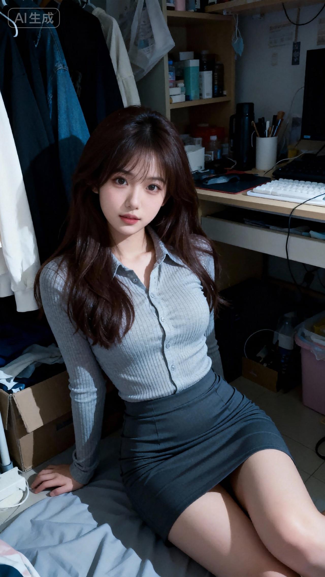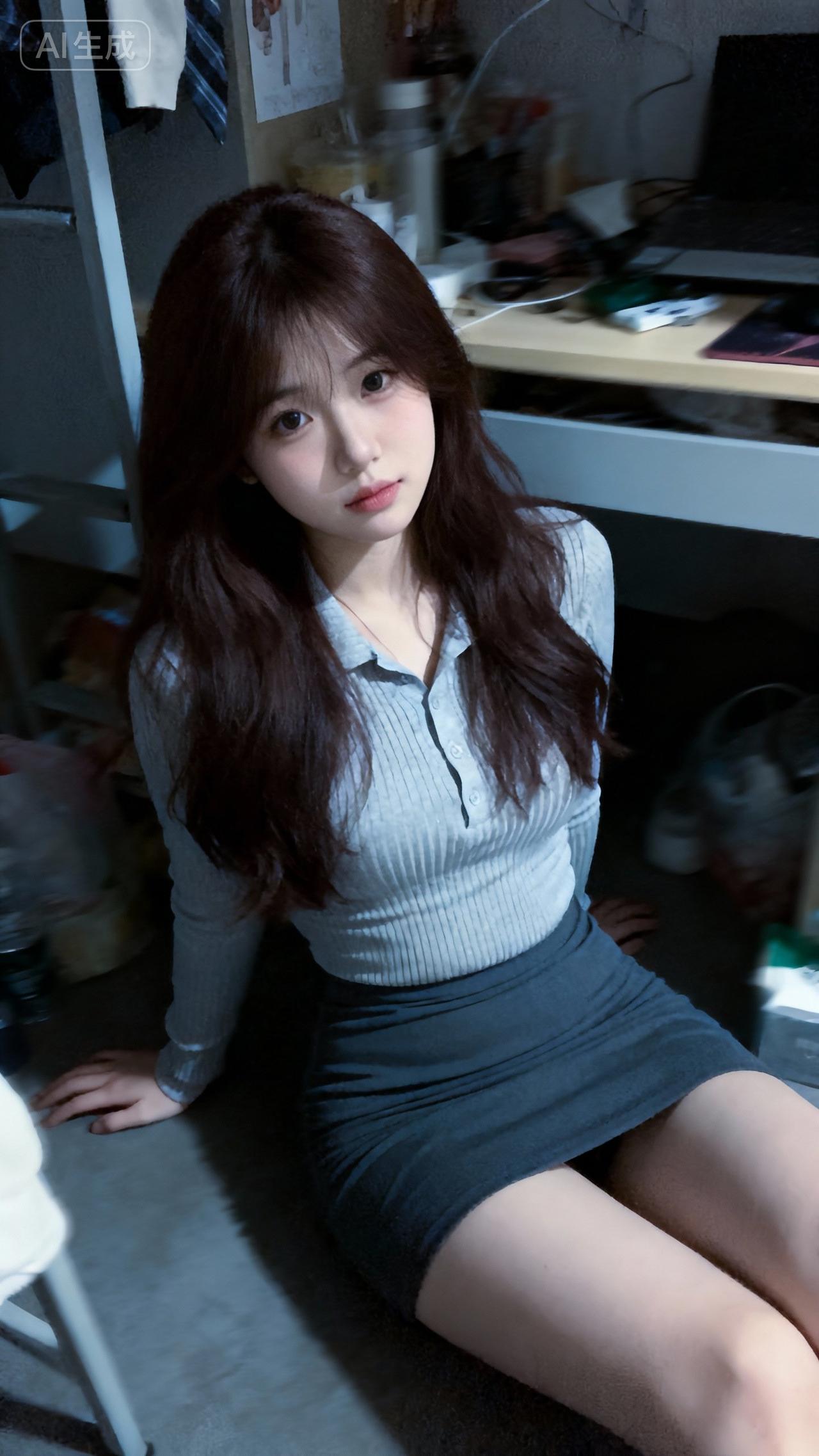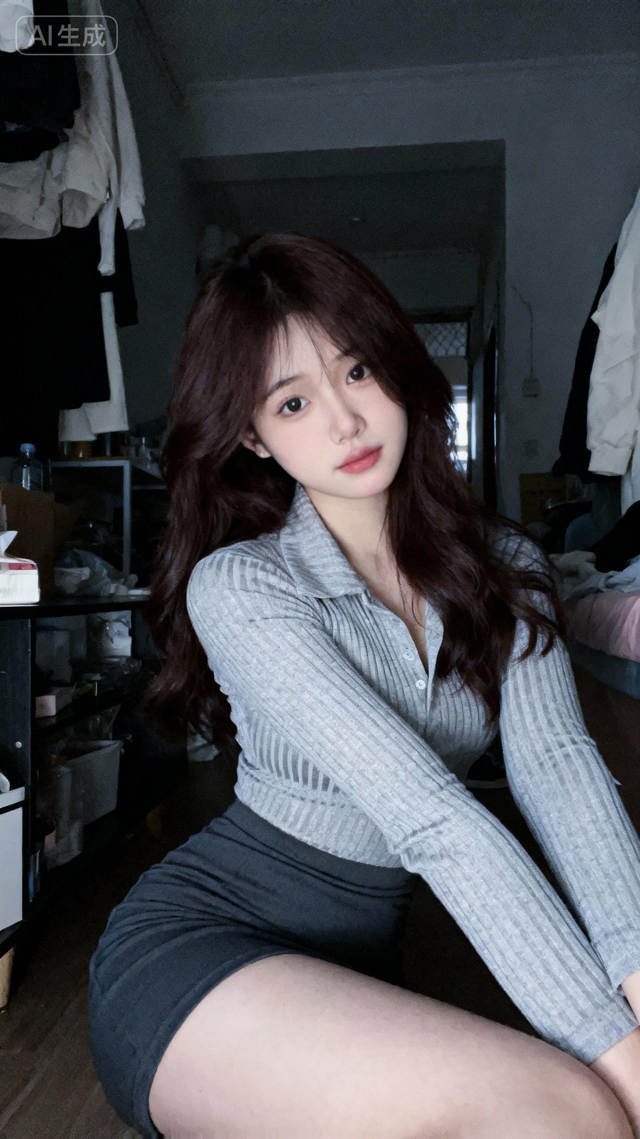 灰色毛衣搭配黑色短裙,简约又时尚,完美展现青春活力!💕👗👠