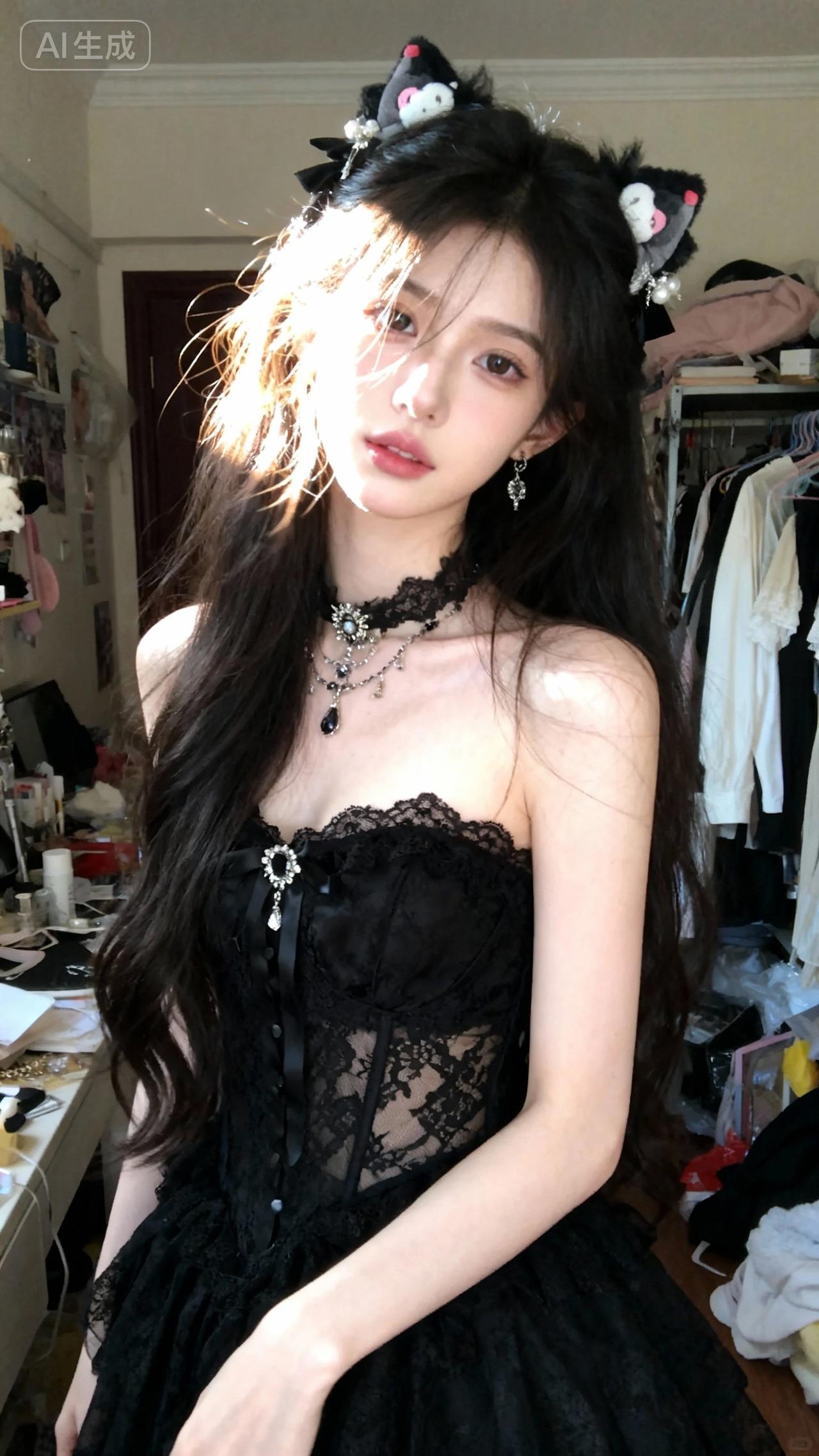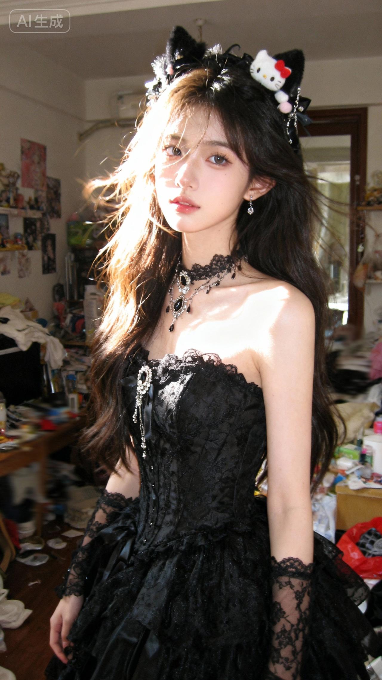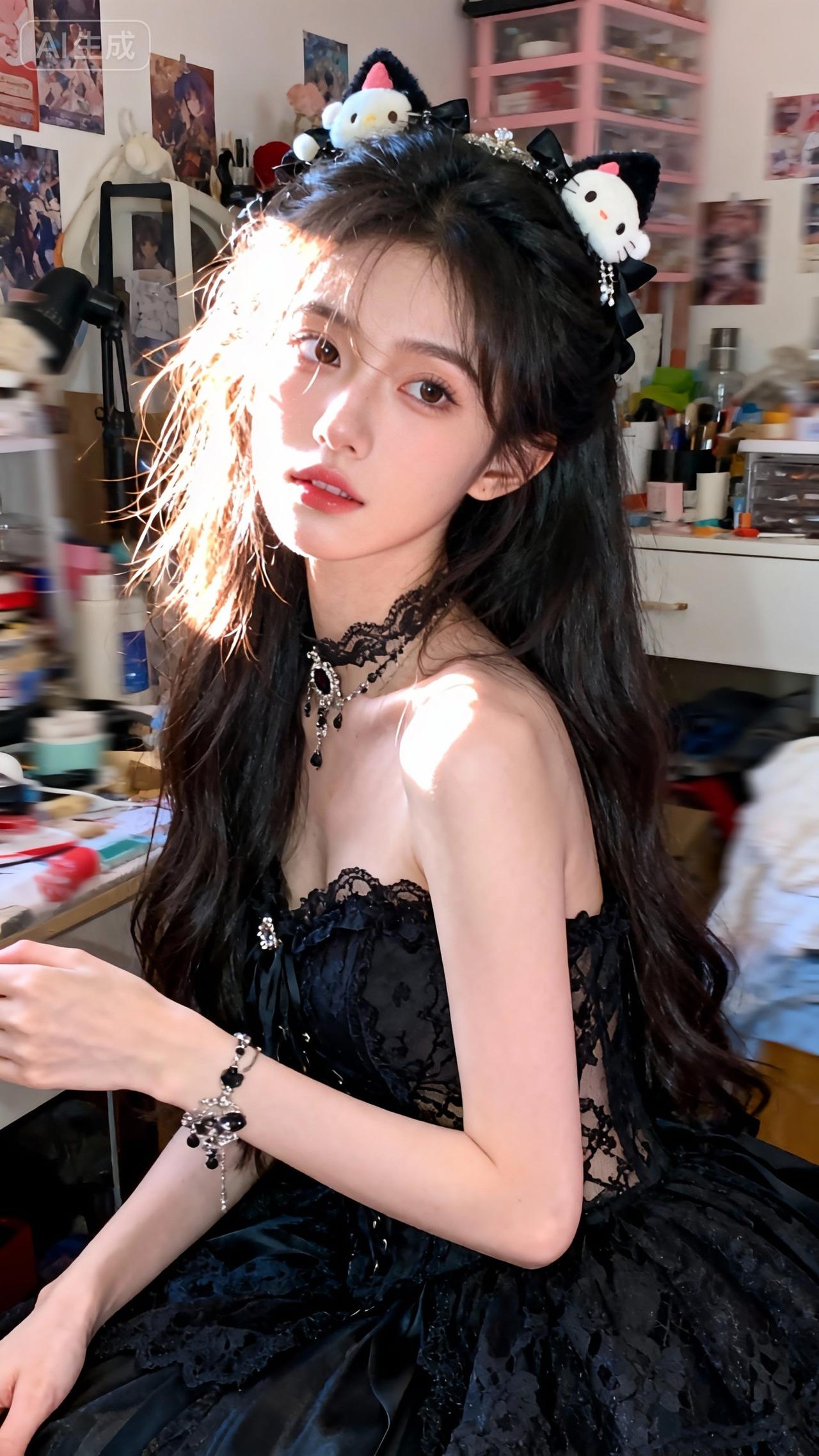 美图欣赏,看图写诗《黑袂飒影》黑衣裁作流云态,露背轻衫趁日开。笑倚
