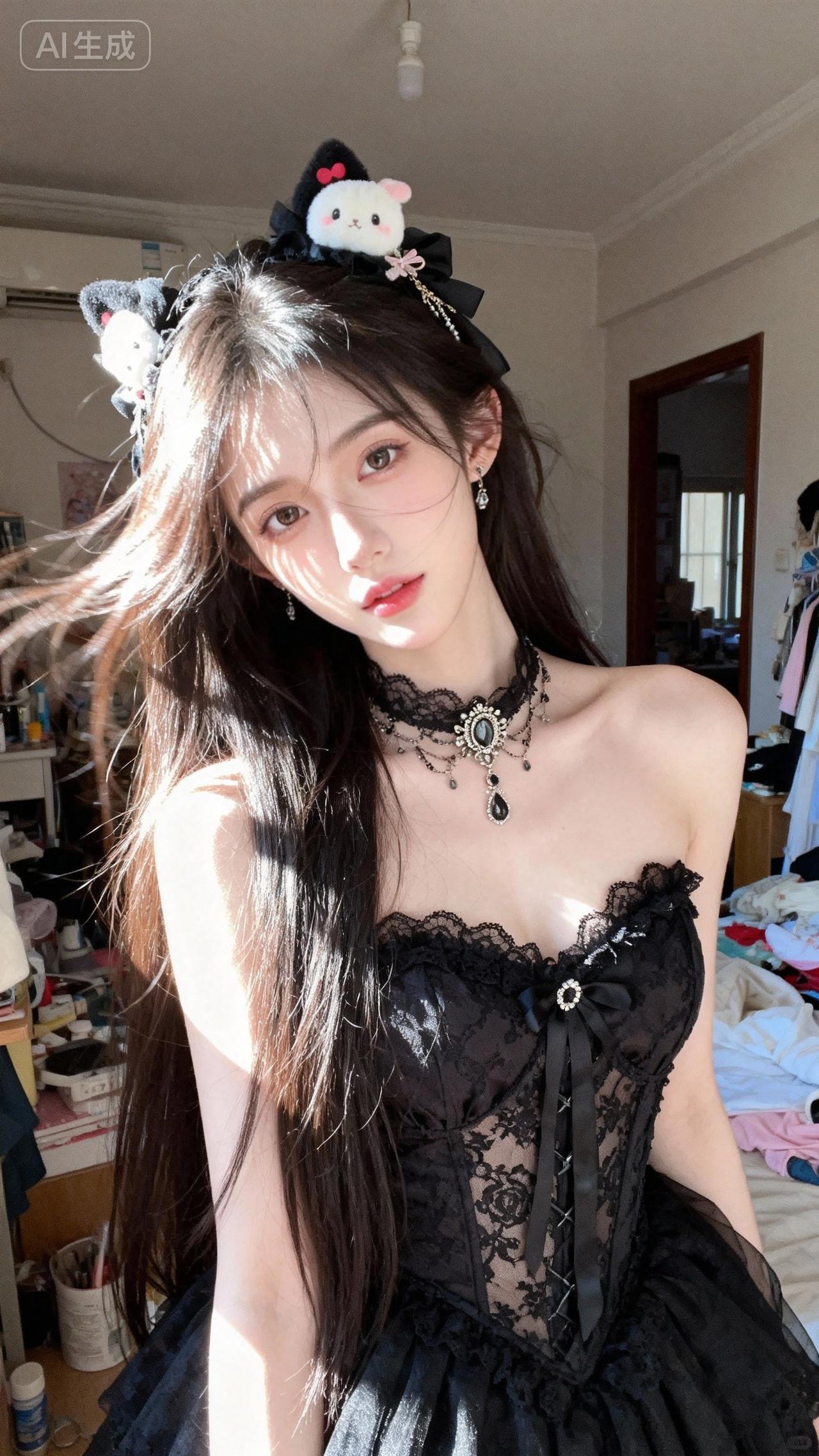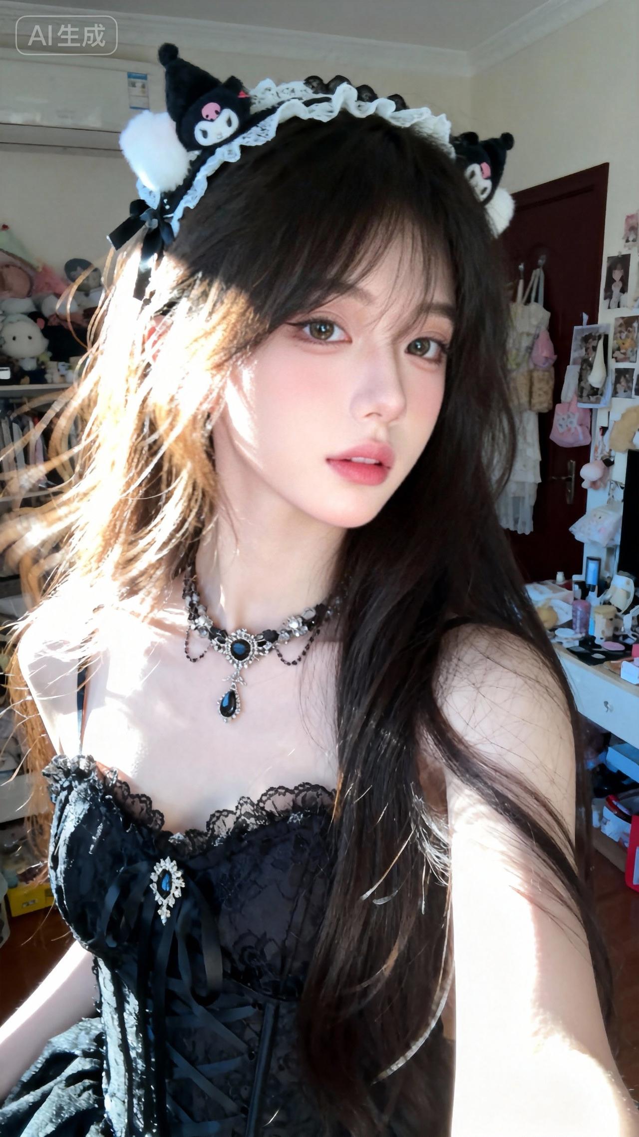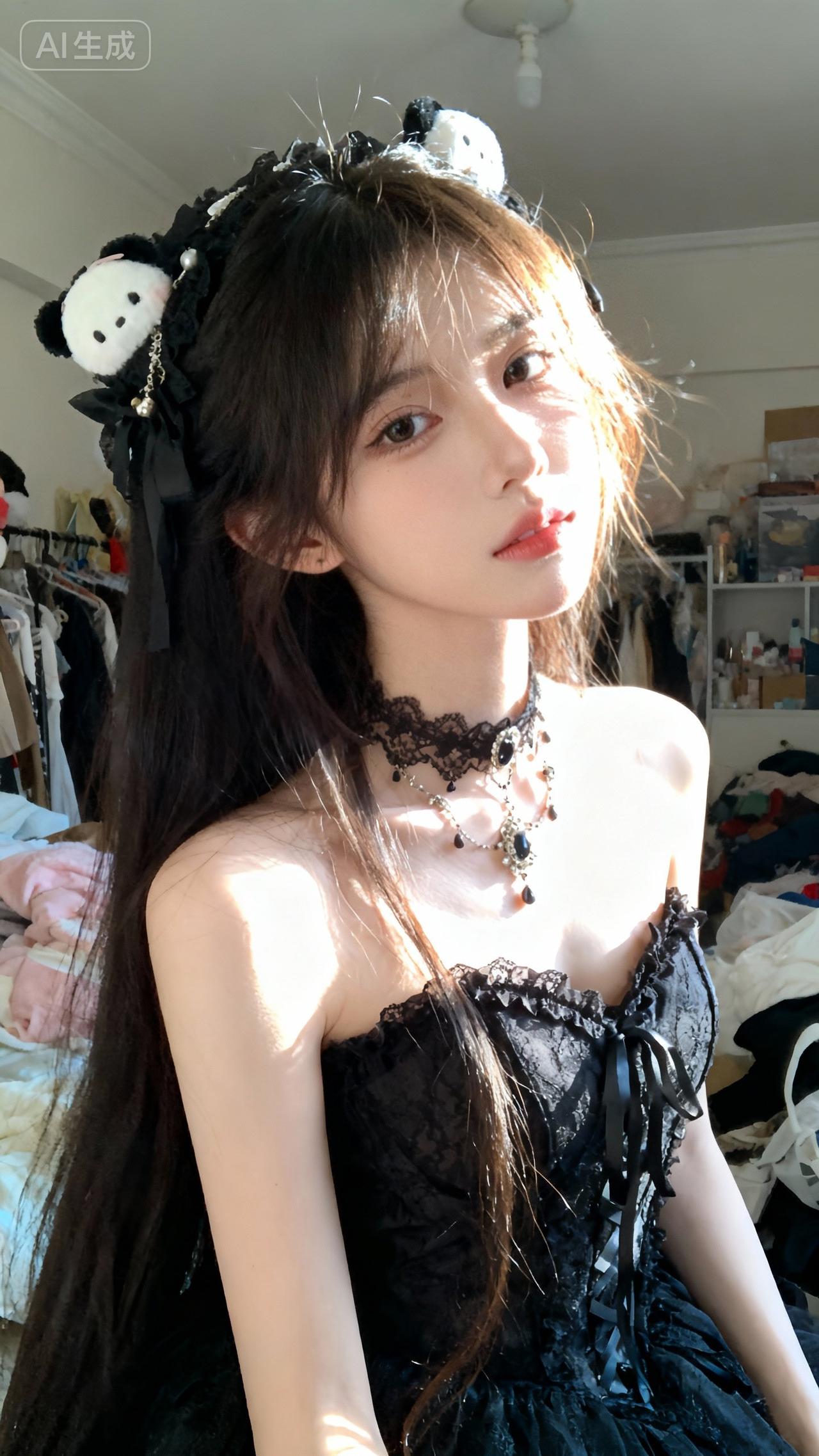 美图欣赏,看图写诗《黑袂飒影》黑衣裁作流云态,露背轻衫趁日开。笑倚