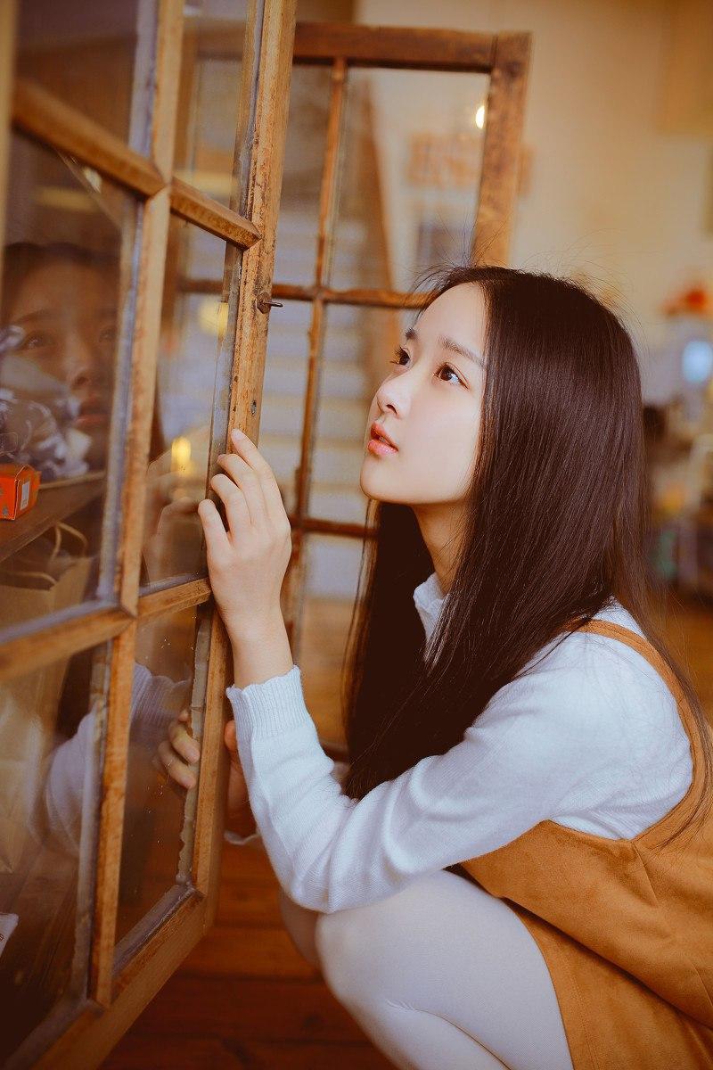 阳光明媚的午后,总是自带一种治愈的滤镜。想象一下,一位少女倚栏微笑,背后是绿意盎