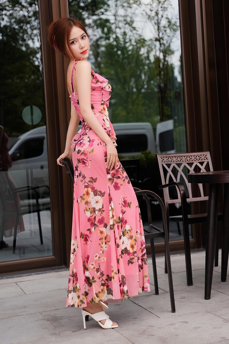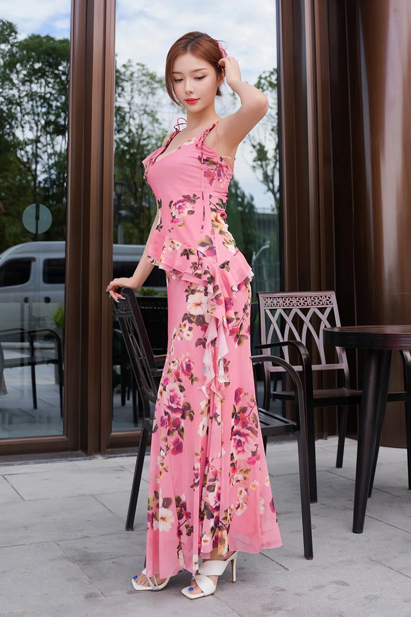 苗条美女白芷粉色碎花连衣裙娇艳动人 高清美女 高雅气质美女 分享女神美图 好身