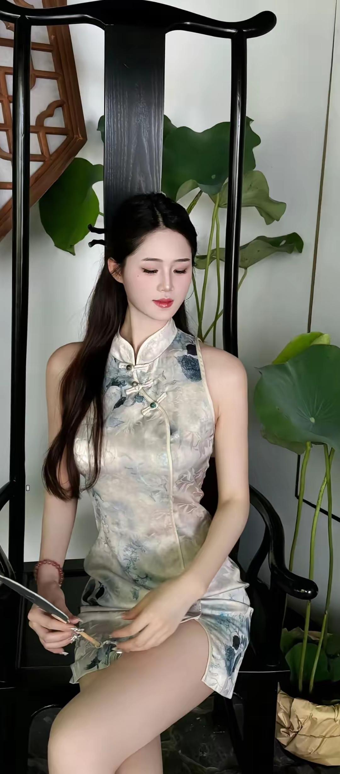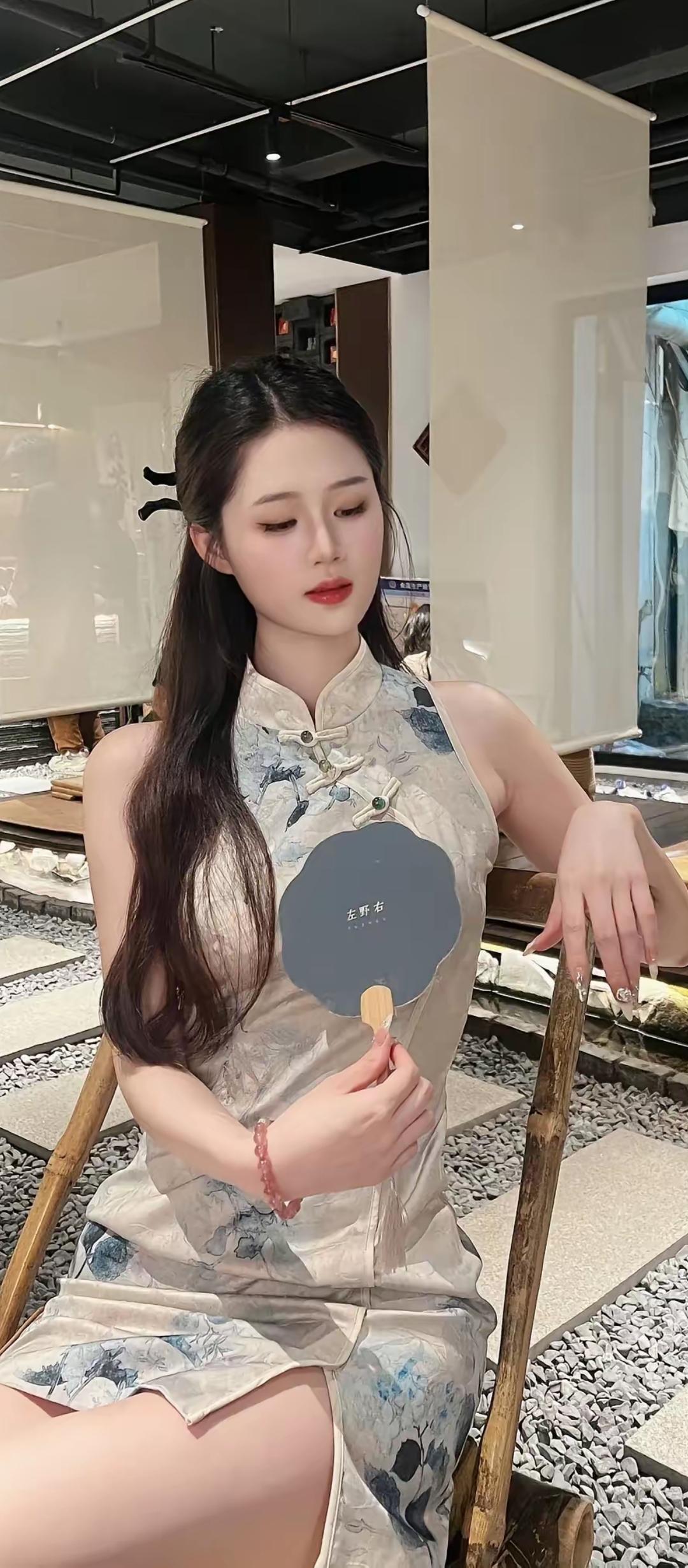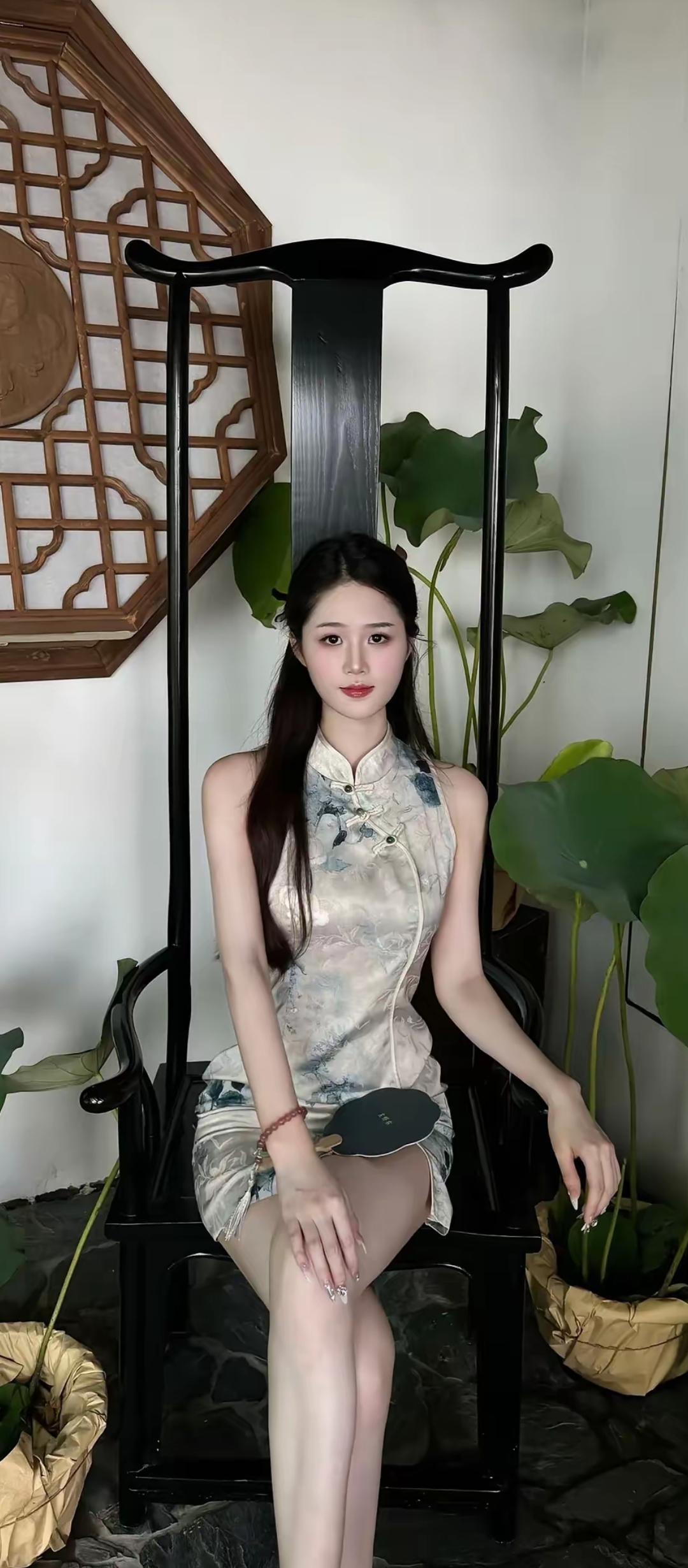 夜色中的古风街巷,红灯笼映照下,她微笑着,优雅动人。