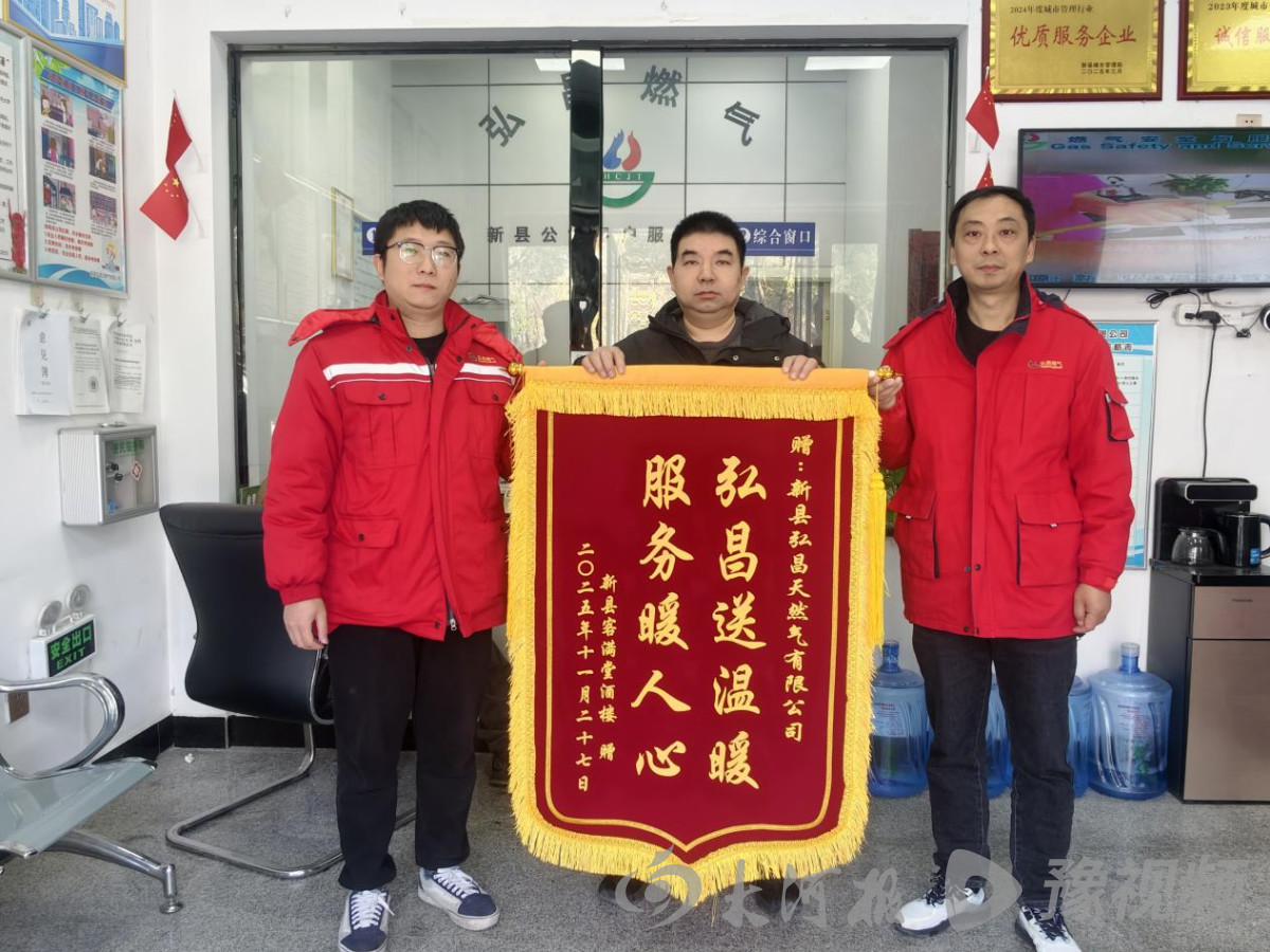 近日,信阳市新县客满堂酒楼负责人专程将一面印有“弘昌送温暖,服务暖人心”的锦旗送至弘昌燃气新县公司,对企业在酒楼管道天然气安装过程中提供的便捷、高效、暖心服务表达诚挚谢意。这面锦旗不仅承载着用户的肯定,更折射出新县持续优化营商环境、激发经营主体活力的扎实成效。