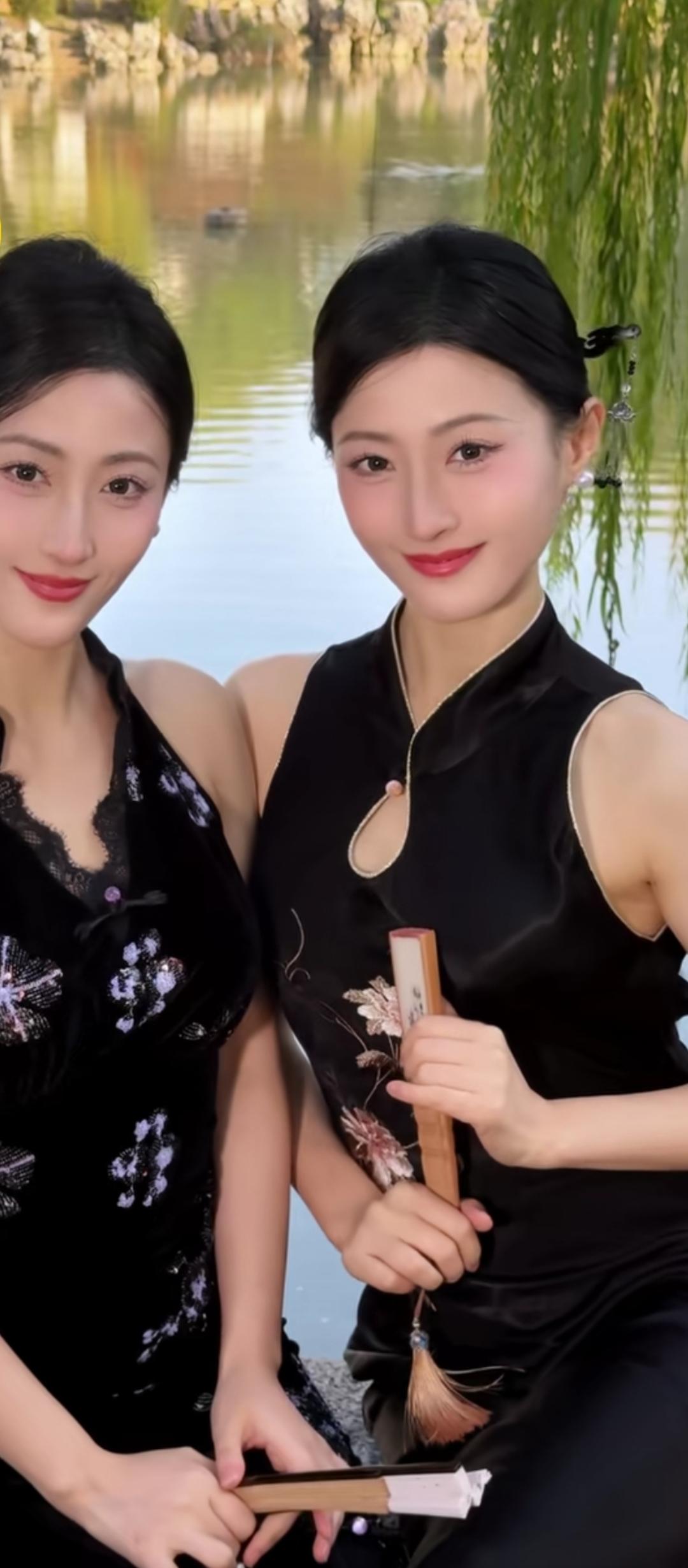 “黑衣姐妹花,古风韵味浓”🌸📖