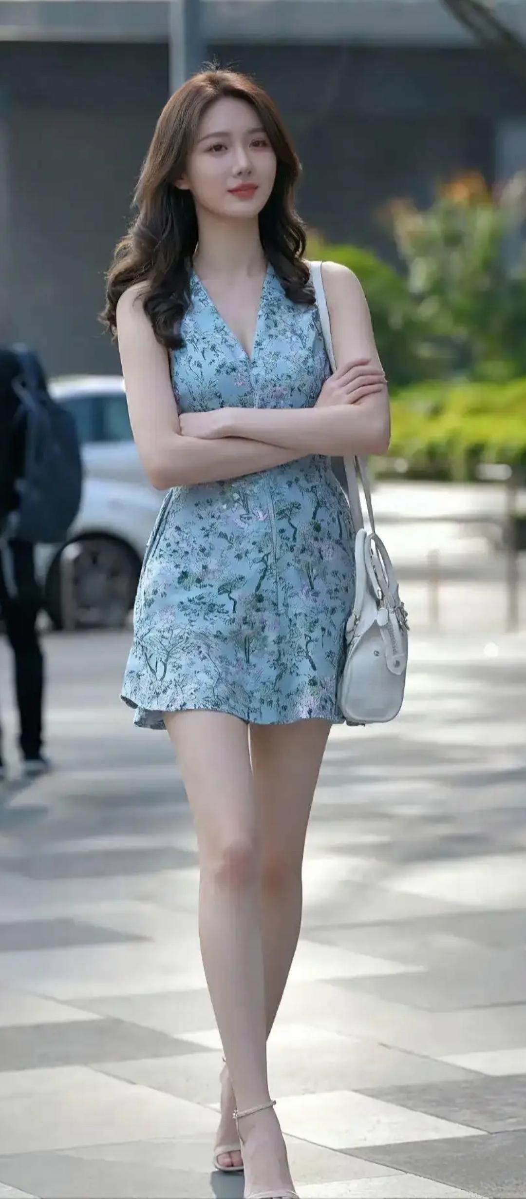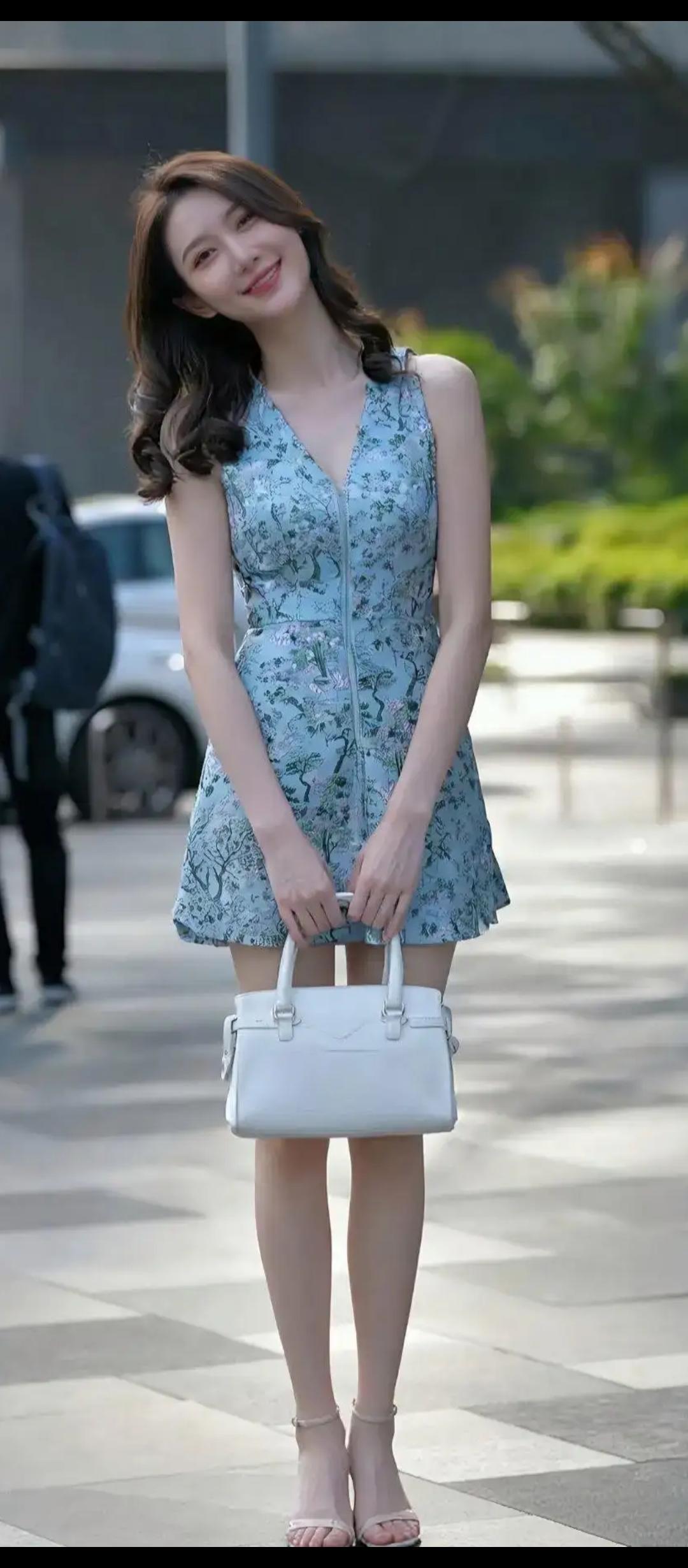 夏日穿搭指南:清新蓝裙+白色手袋,优雅出街!🌞👗👜