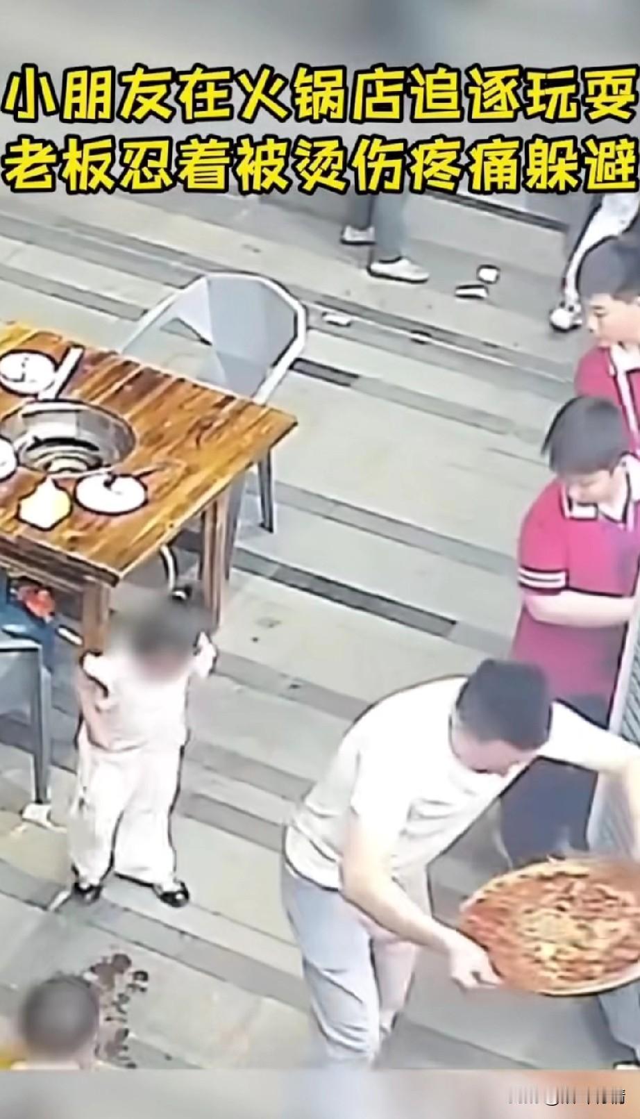 火锅店的老板最怕有小孩, 在他的店里跑来跑去玩耍, 想必大家都看到过, 小孩在饭店跑来跑去, 被服务员撞到了, 火锅店都是热油加热水, 一旦碰到孩子, 有些小孩都被毁容了, 这家店铺的老板也是倒霉, 又遇到了不操心的父母, 小男孩和小女孩在火锅店里面追逐打闹,旁边的父母也不去管教, 当时老板端着锅底走了过来, 男孩子不看路, 直接撞到了端着锅底的老板, 老板也是吓了一跳, 赶紧将锅底高高举起, 撇向了一边, 自己的手都被烫到了, 后边小女孩也被吓到不跑了, 火锅的锅底撒在了小女孩的面前, 要不是老板牺牲了自己的手, 这小女孩可就要毁容了, 旁边的父母也是吓得哇哇大叫, 不知道父母会不会长教训? 老板也是倒了大霉, 手肯定被烫的不轻! 大家对于火锅店里有嘻嘻打闹小孩怎么看? 火锅店意外事件 火锅店 火锅店事故 火锅店泼烫事件 餐饮店事故 餐饮店伤人