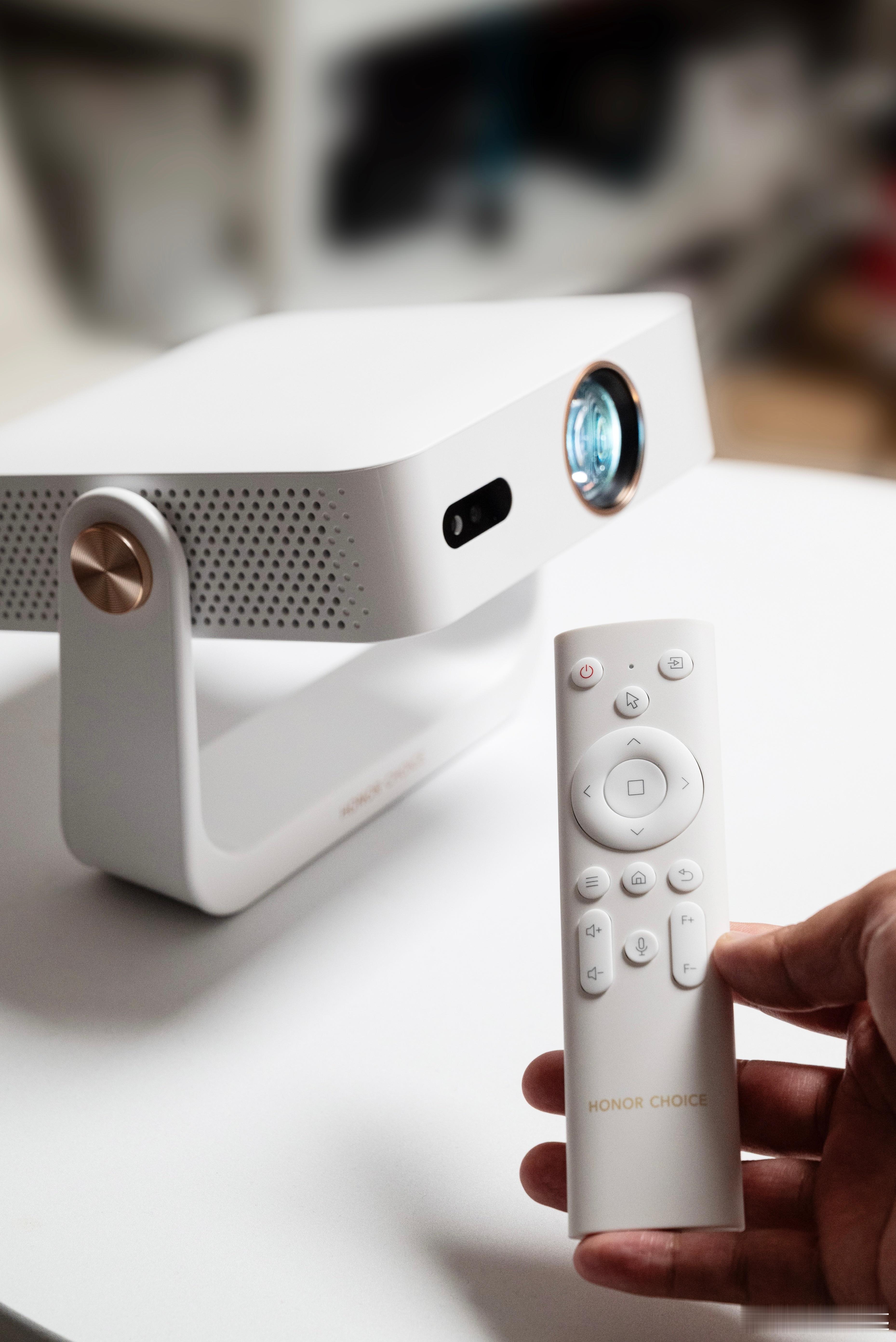 荣耀500系列发布会上还有个亲选的萤蜂AI投影仪Air,体验了一下感觉还可以呀,颜值蛮不错,而且拥有280CVIA 流明亮度,1080P分辨率,160°自由俯仰,配的是指向遥控器,500就可以拿下,确实蛮香