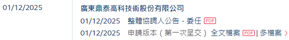 2025年12月1日,来自广东东莞厚街镇的A股上市公司广东鼎泰高科技术股份有限公司GuangdongDtechTechnologyCo.,Ltd.(简称鼎泰高科)在港交所递交招股书,拟在香港主板挂牌上市。