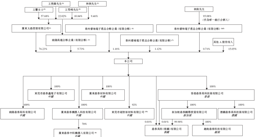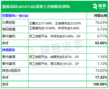 招股书显示,鼎泰高科在香港上市前的股东架构中,