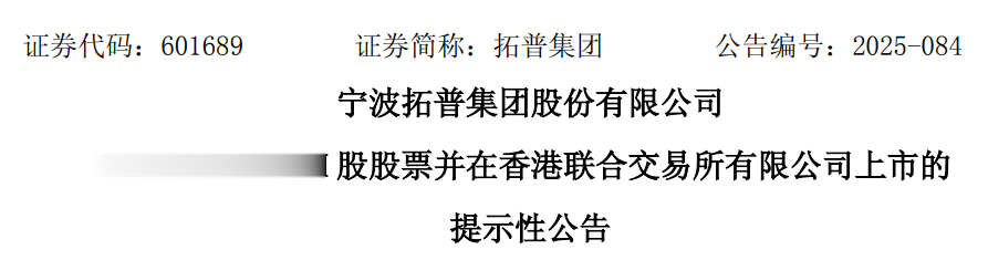 来自浙江宁波的A股上市公司拓普集团(601689.SH)发布公告称,为加速推进国际化战略,完善海外产能布局,强化全球客户服务能力,公司拟借助国际资本市场的资源与机制优势,拓宽多元融资渠道,正在筹划发行境外股份(H股)并在港交所上市事宜。