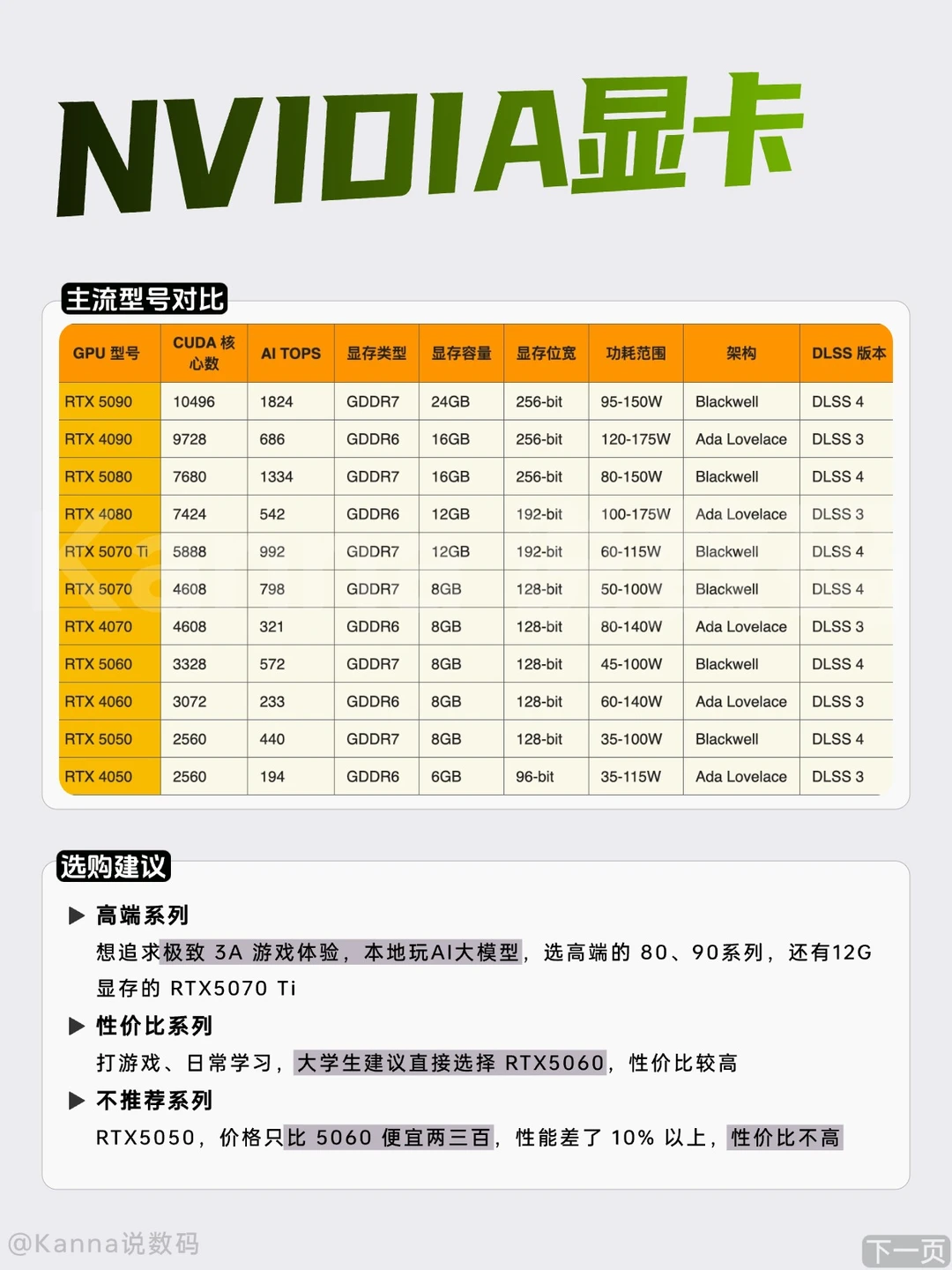 👍 想追求极致 3A 游戏体验,本地玩AI大模型,选高端的 80、90系列,还有12G 显存的 RTX5070 Ti